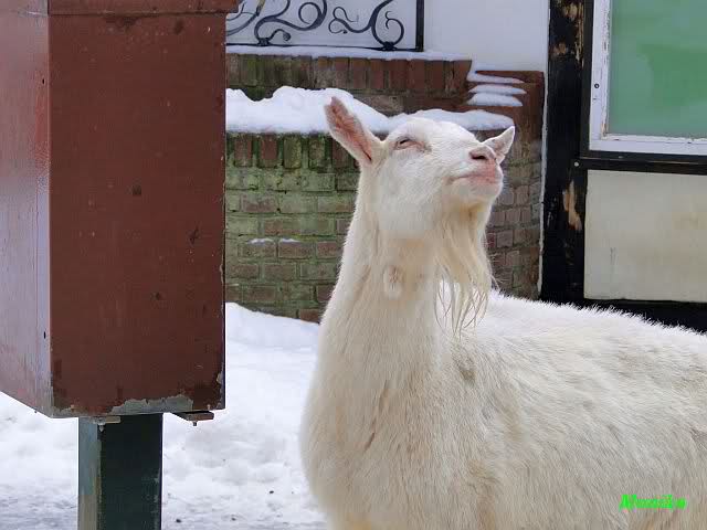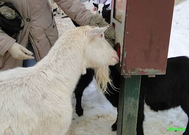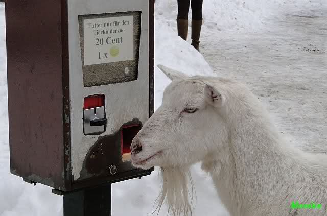 Die Ziege wartet , dass Jemand den Automat betätigt.