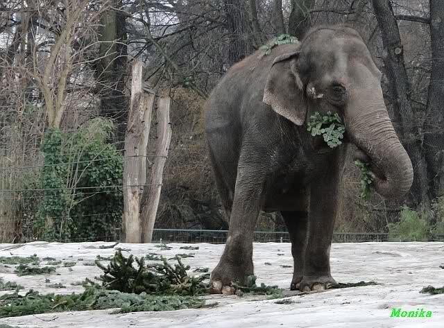 auch bei den Elefanten gab es Tanne.Die Zweige waren über die ganze Anlage verstreut.
