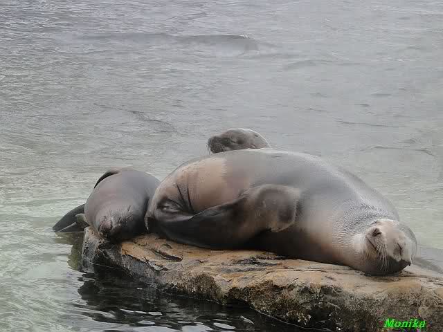 Zurzeit sind mindestens genau soviel Reiher im Wasser wie Seelöwen.