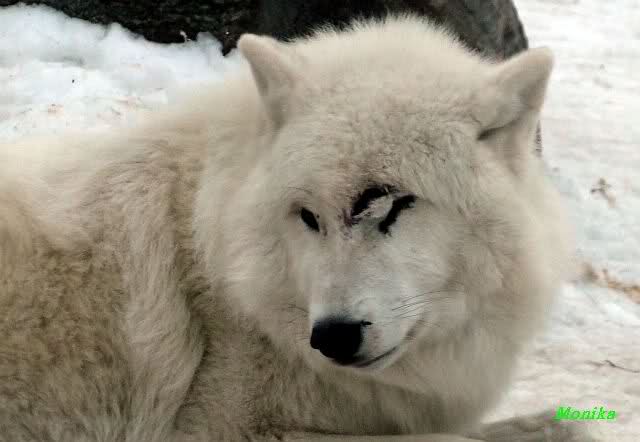 Bei den Wölfen muss es in den vergangenen Tagen eine böse Auseinandersetzung gegeben haben. Dieser Wolf hat eine schlimme Verletzung am Auge.