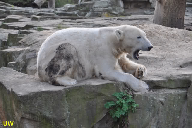 Das musste ich mir natürlich ansehen, zumal Knut immer noch schlief. Ich trennte mich also von der schlafenden Schönheit und ging zu den großen Eisbären. Dort standen schon jede Menge Besucher; ich sah viele bekannte Gesichter.