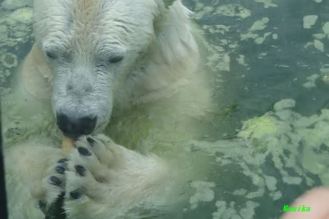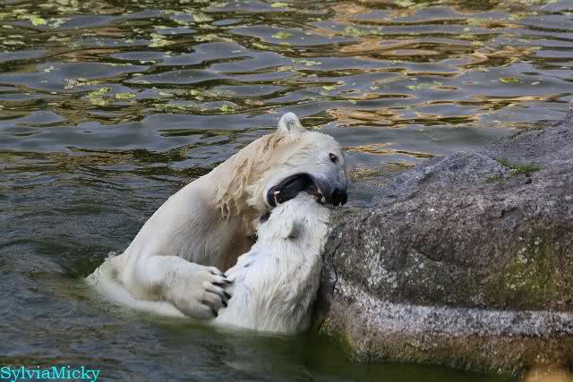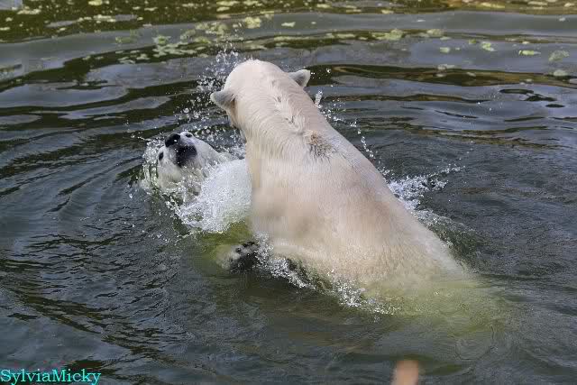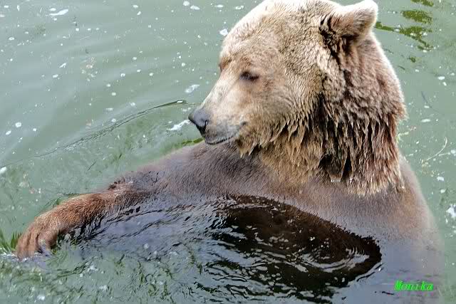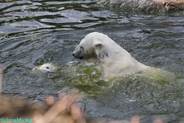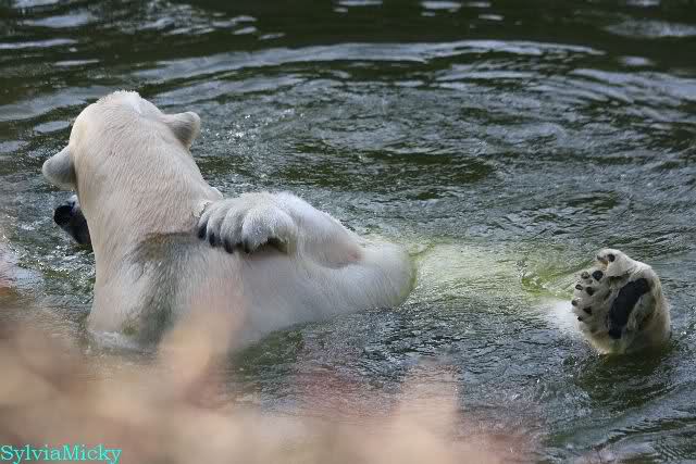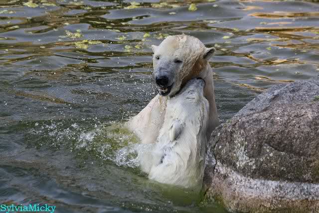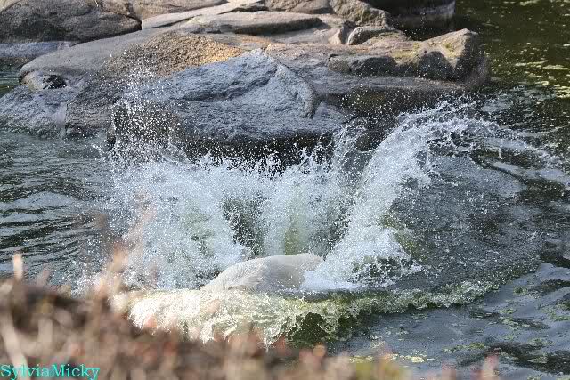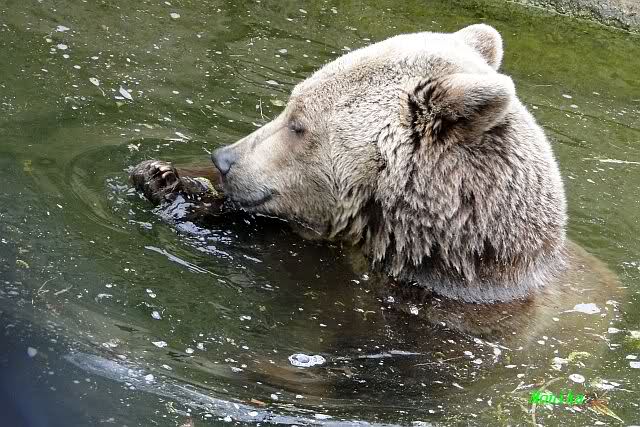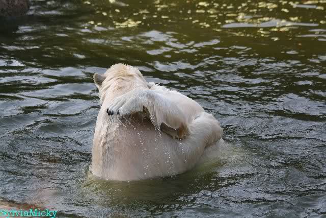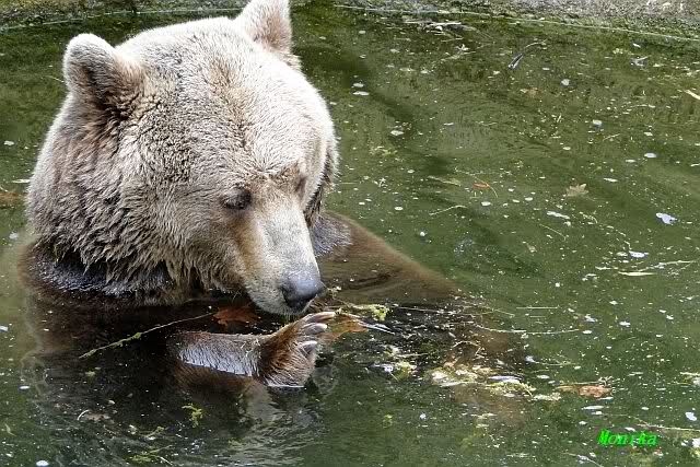 Siddy spielte im Wasser mit Blätter und fraß sie auch.
