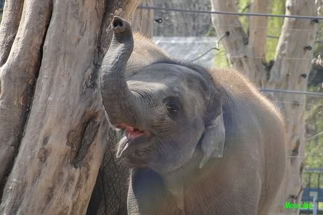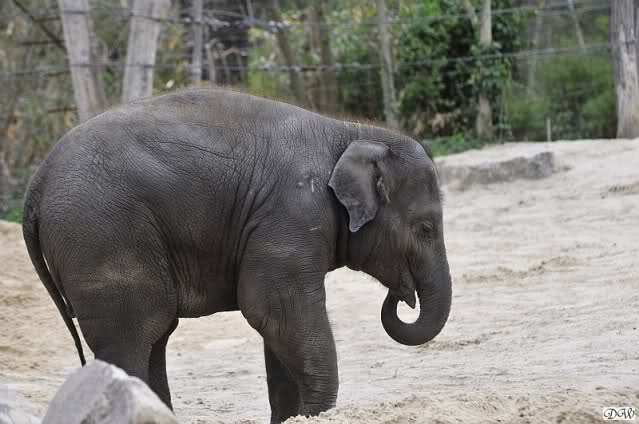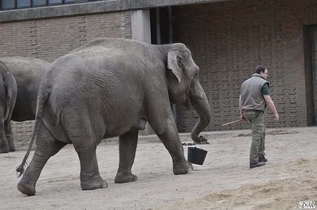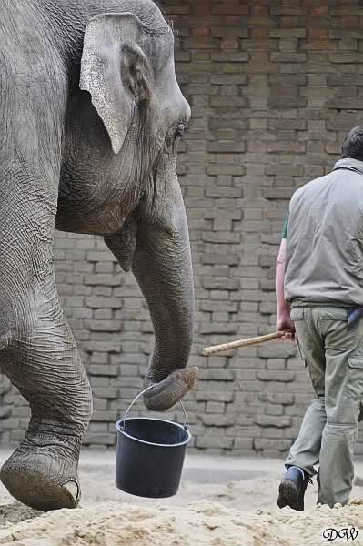 Zur Freude der Elefanten verteilte ein Pfleger Pellet auf der Anlage