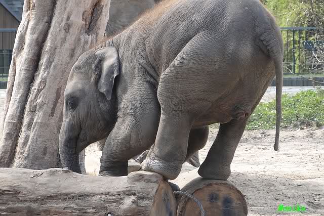 Kom Raya balancierte auf den neuen Baumstämmen.