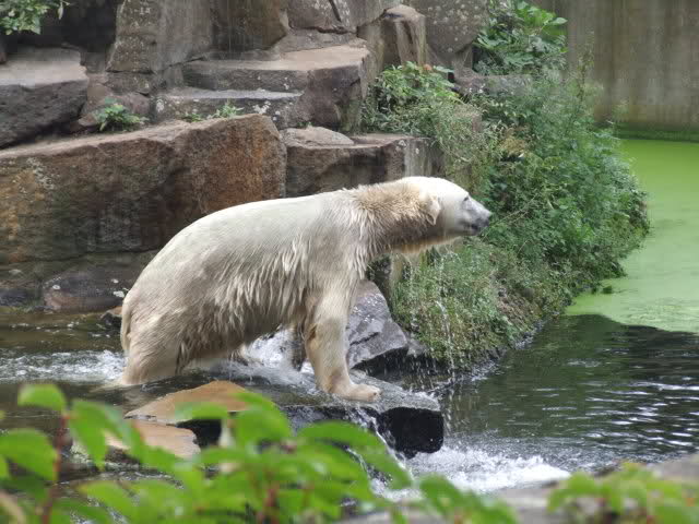 Knut bekam heute ein großes Stück Fleisch, daß er auch über die Anlage schleppte. Außerdem Fische, Obst und Brötchen, also reichlich. Er fühlte sich sichtlich wohl.