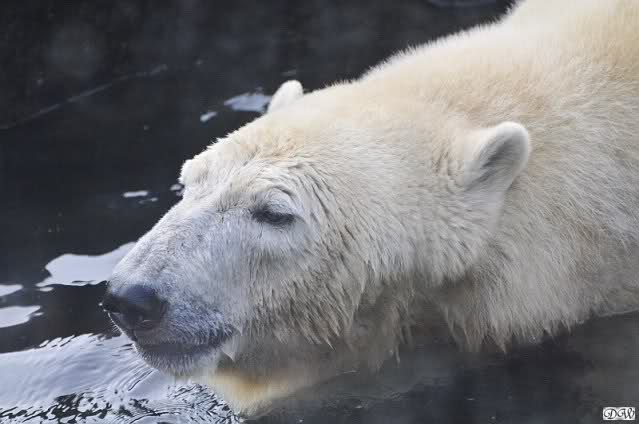 Es war ein gigantischer Tag bei Knut und Gianna heute. Obwohl Herr Henkel mir gestern sagte, dass die beiden Bären heute wahrscheinlich nicht auf der Anlage sein würden, hat man es doch geschafft, Knut kurz nach 12.00 herauszulassen. Der Absaugwagen, der den ganzen Schlamm heraussaugt, war nach Aussagen einiger Besucher schon früh da und begann mit der Arbeit. Dann wurde sofort Wasser eingelassen und Knut kam auf die Anlage., Man erzählte mir, dass er begeistert ins Wasser gesprungen sei und alles genau inspiziert hätte.