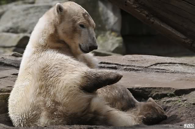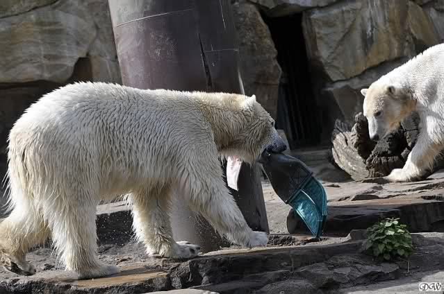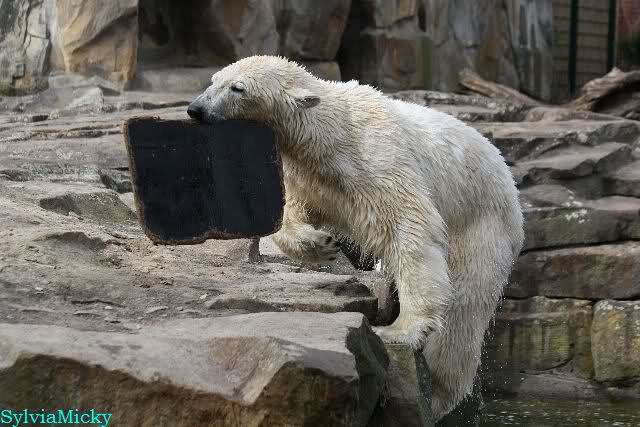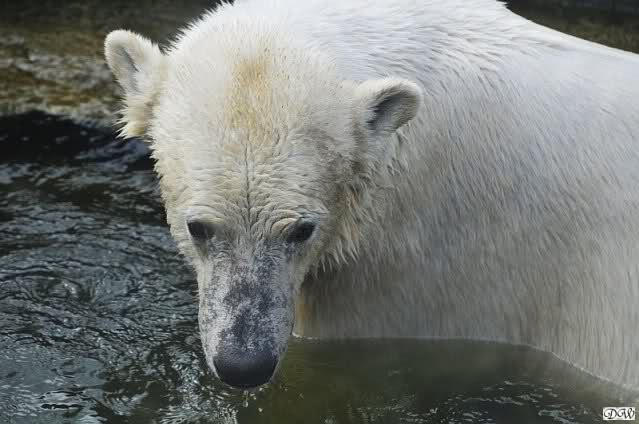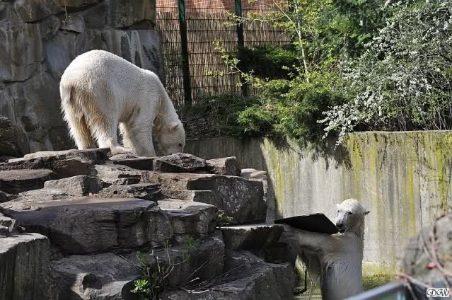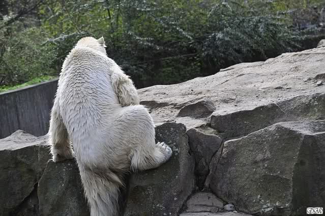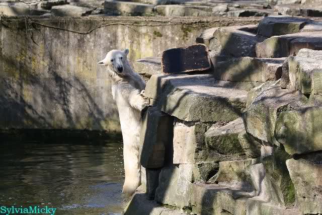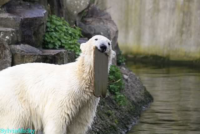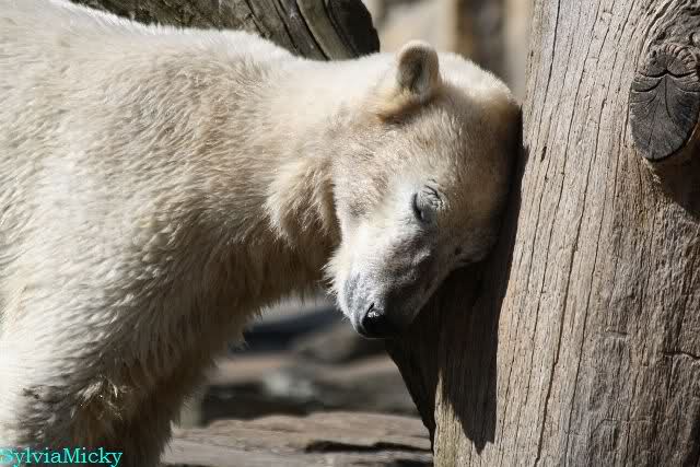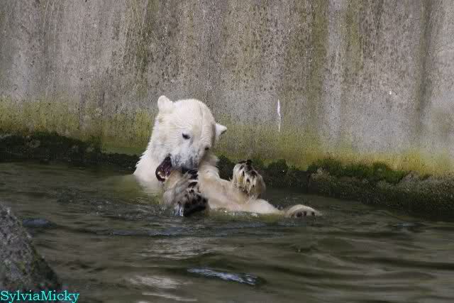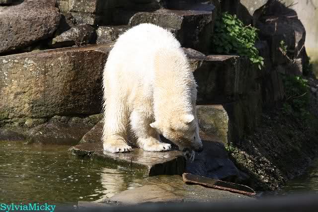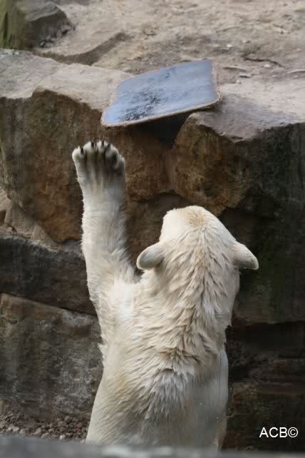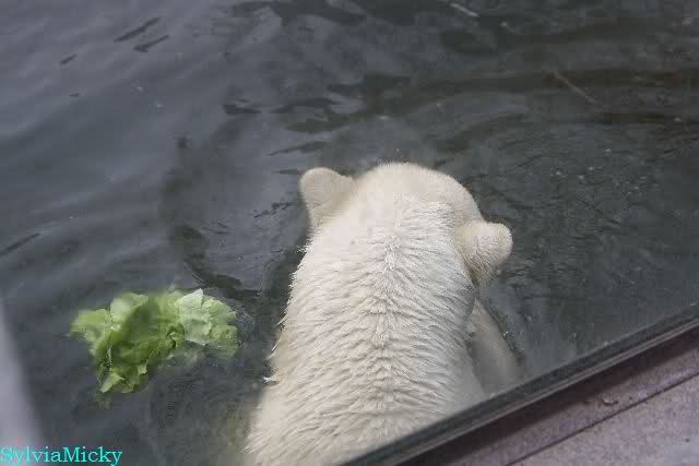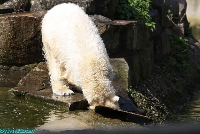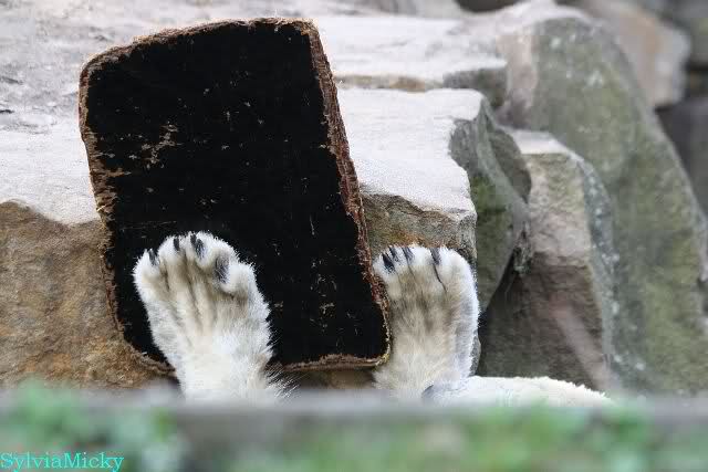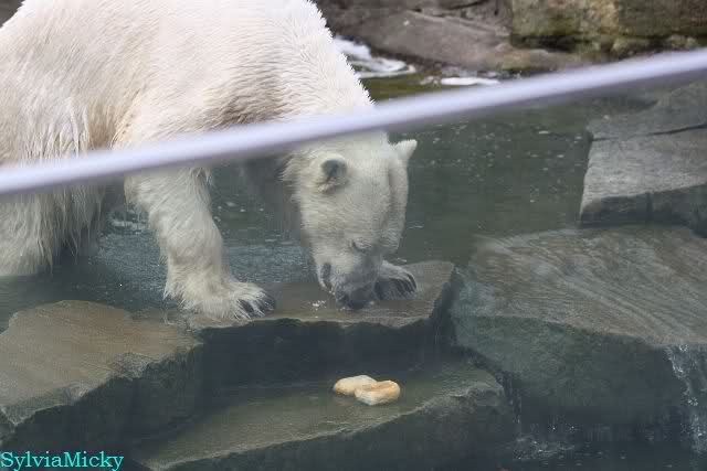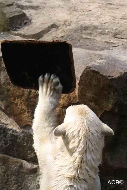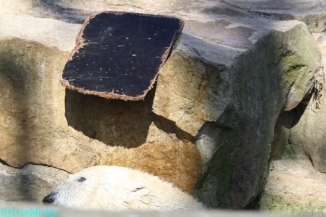 Schade, daß der Zoo die Hinweisschilder zu Knut beim Gehege der großen Eisbären abgenommen hat. Die Besucher rätseln immer, wer von den großen Eisbären Knut ist.