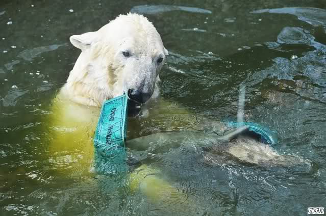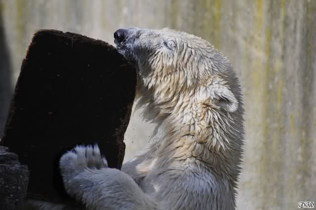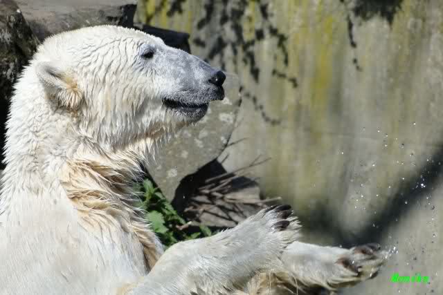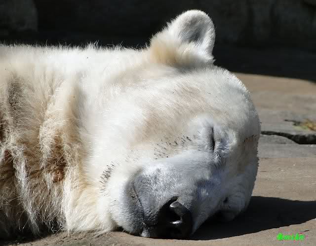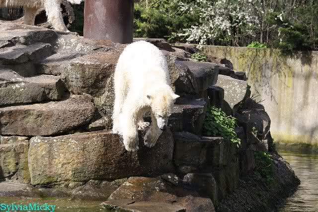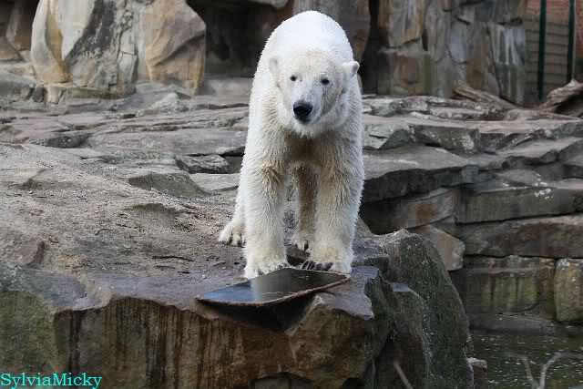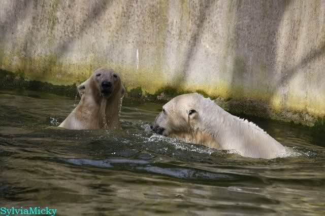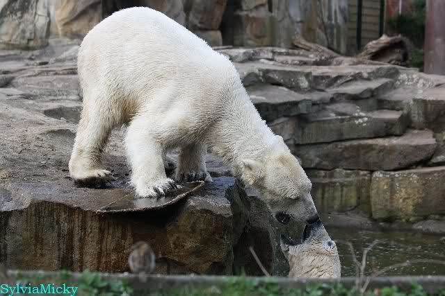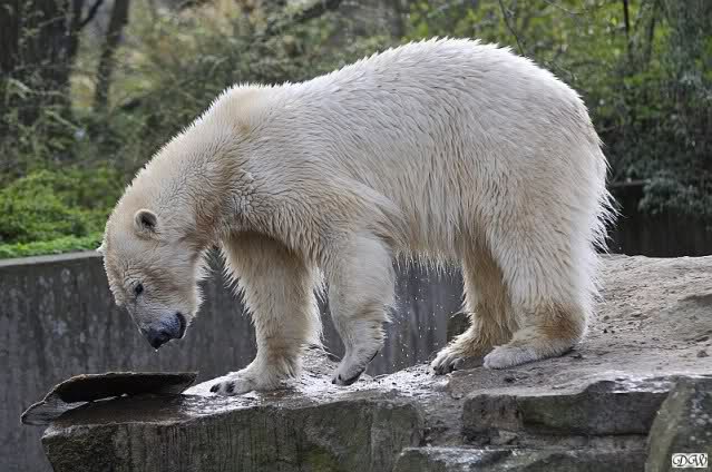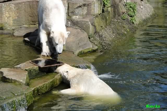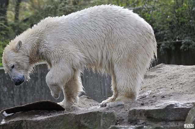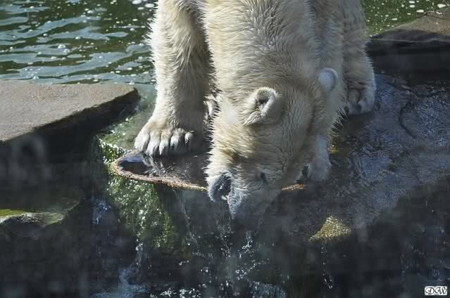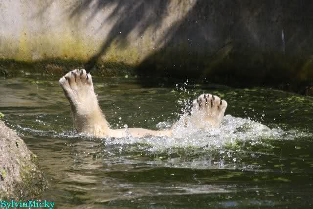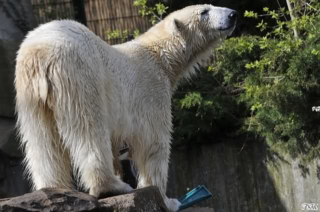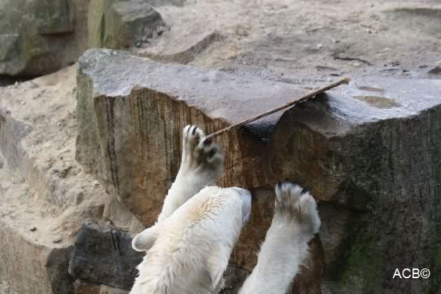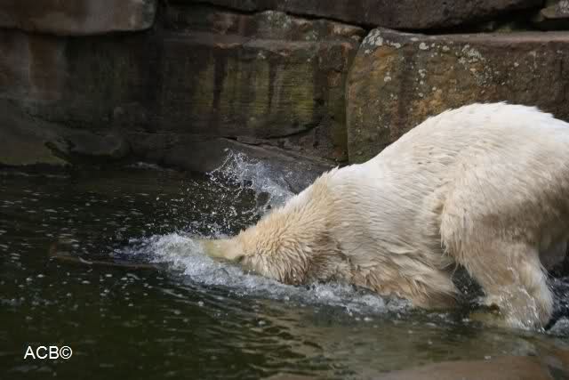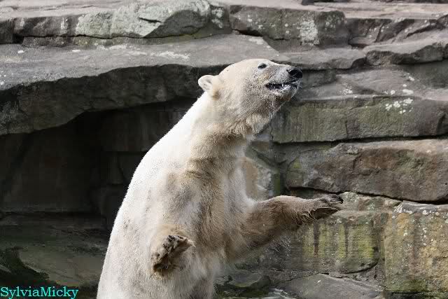 Schade, daß der Zoo die Hinweisschilder zu Knut beim Gehege der großen Eisbären abgenommen hat. Die Besucher rätseln immer, wer von den großen Eisbären Knut ist.