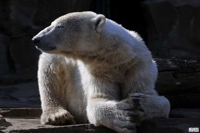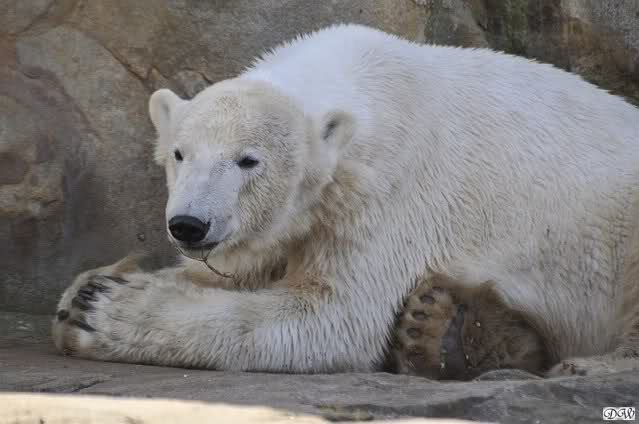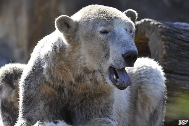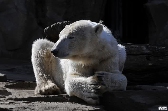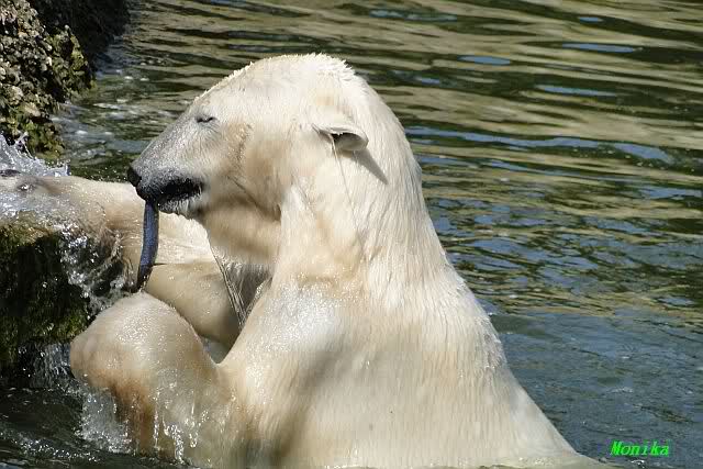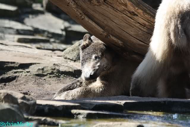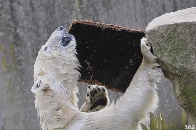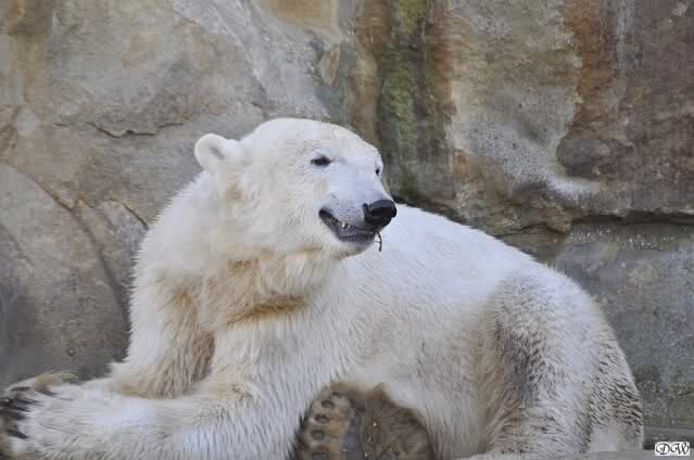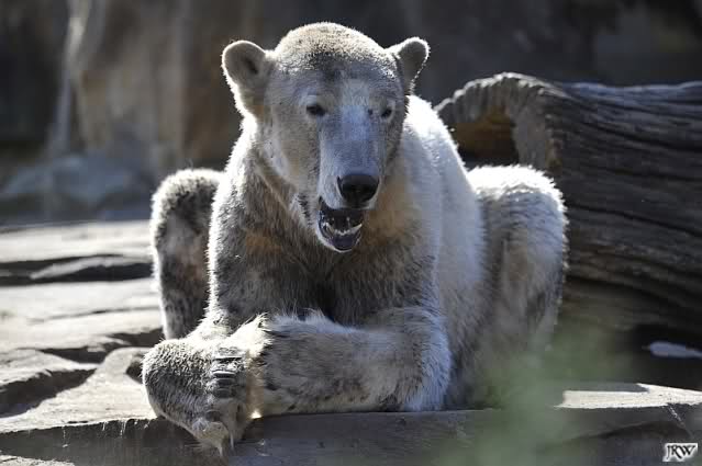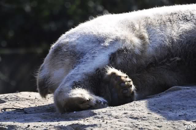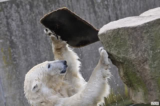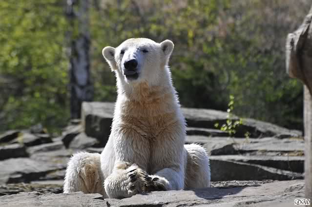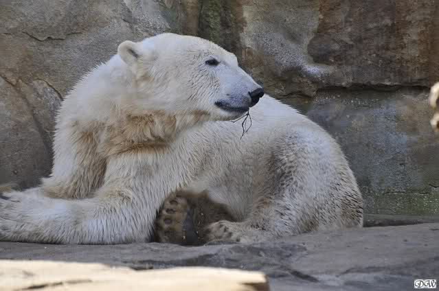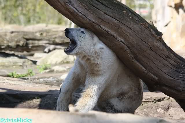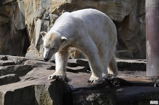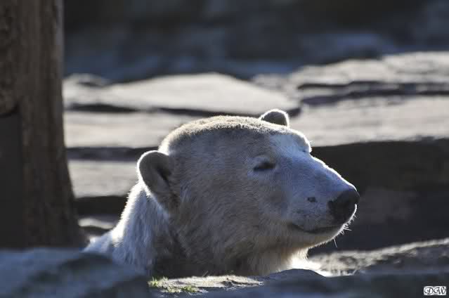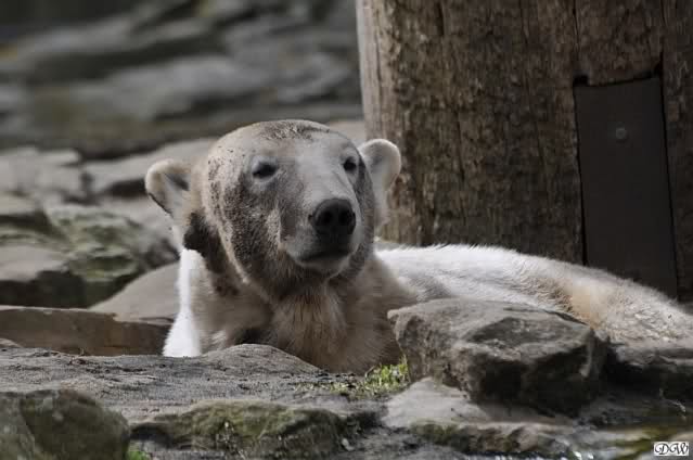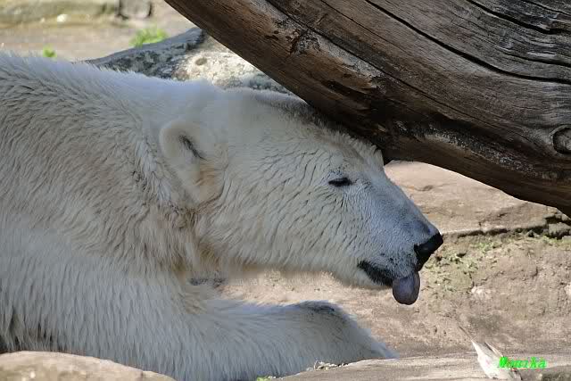 Schade, daß der Zoo die Hinweisschilder zu Knut beim Gehege der großen Eisbären abgenommen hat. Die Besucher rätseln immer, wer von den großen Eisbären Knut ist.