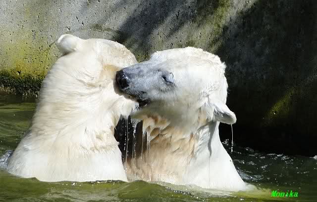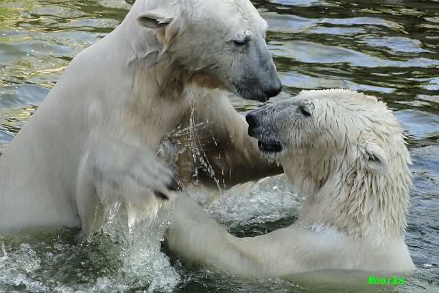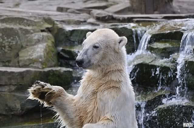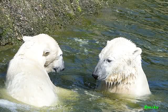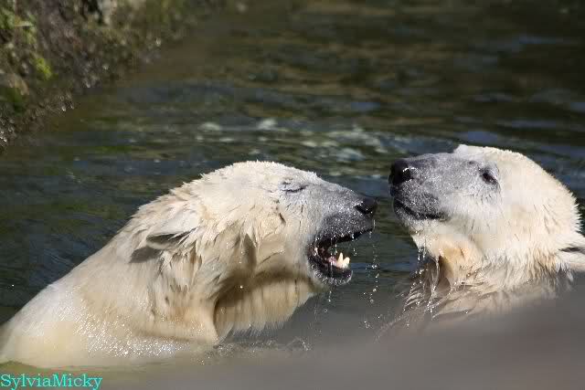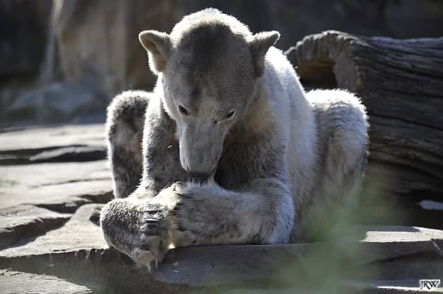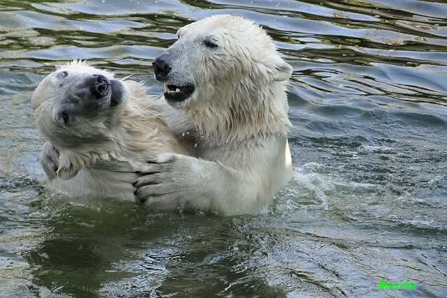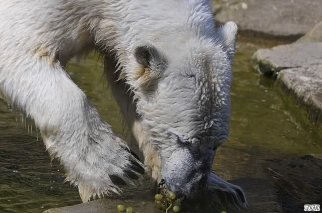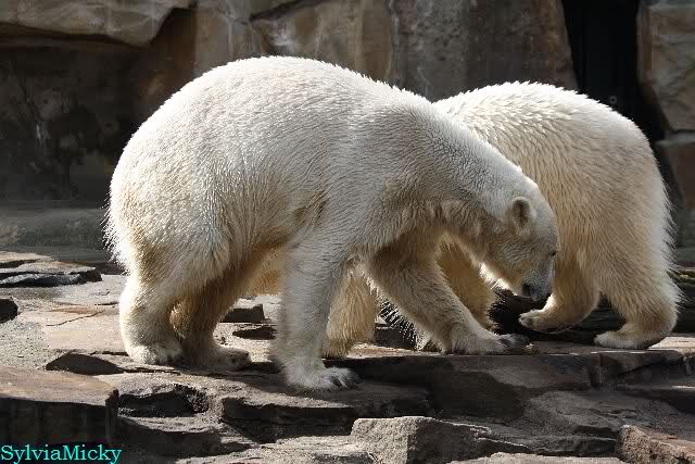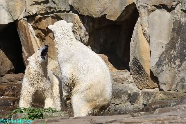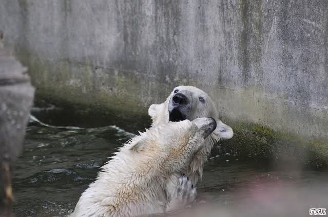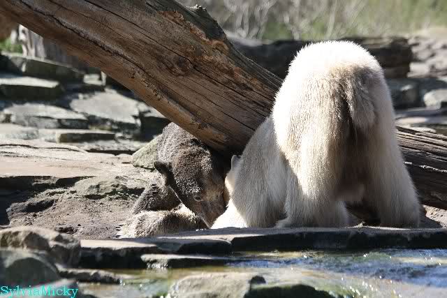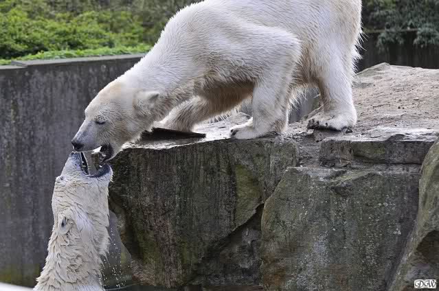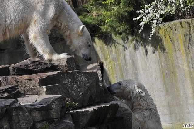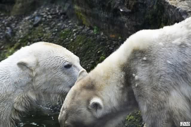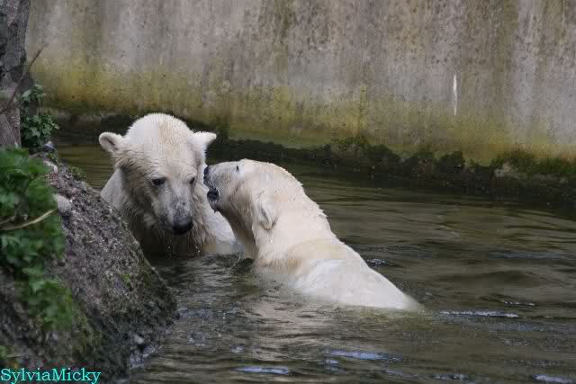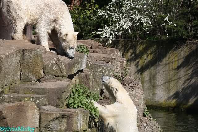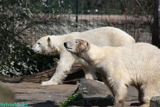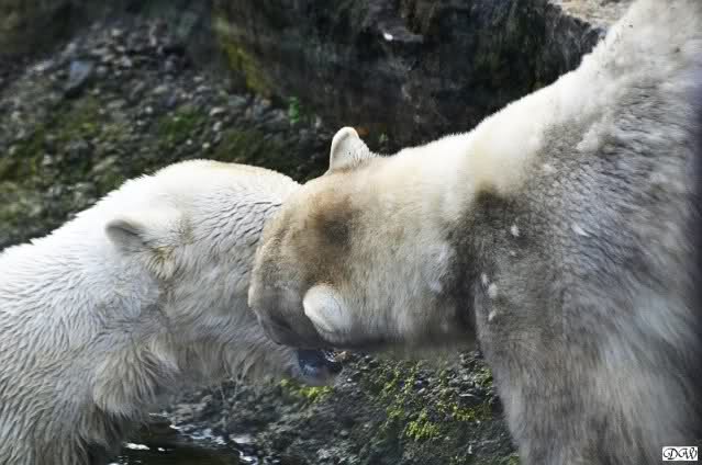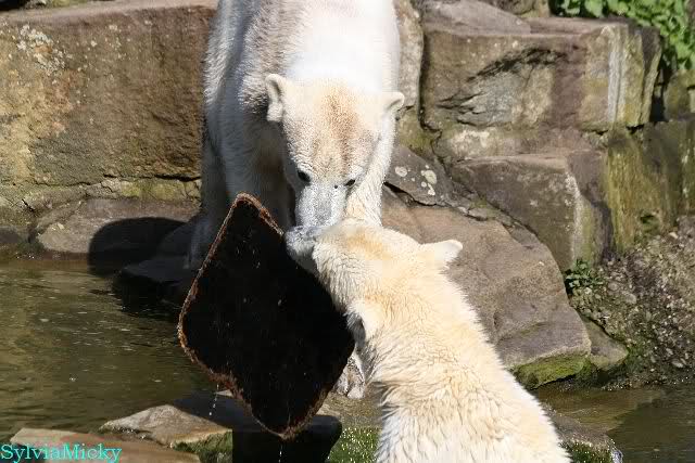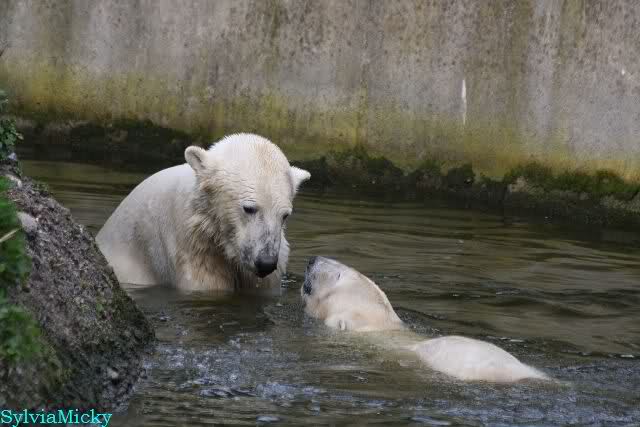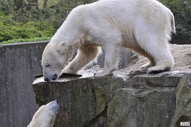 Leider ist auch mein Flug annuliert worden und deshalb kann ich am Dienstag nicht nach Berlin kommen um Knut und Gianna zu besuchen. Richtig Schade! Ich hatte mich so gefreut um Knut un Gianna nach fast 3 Monate wieder zu sehen. Aber wie Violetta auch schon geschrieben hat aufgeschoben ist nicht aufgehoben. Da komme ich doch ein anderes Mahl. Für jetzt sind es euere Foto's und euere Zooberichten die mich am laufenden halten über unsere Zwei Zauberbären.