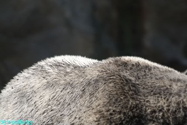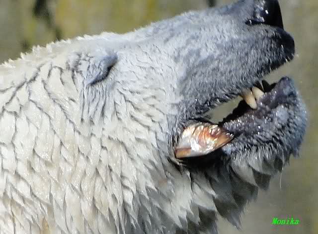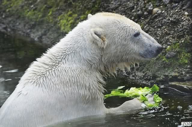 Nach der Fütterung verteidigte Knut den ungeliebten Salat erfolgreich gegen Gianna. Das war das erste Mal, daß ich das gesehen habe. Ausgerechnet den Salat. Er hatte wohl noch Hunger. Es gab auch nicht viel.