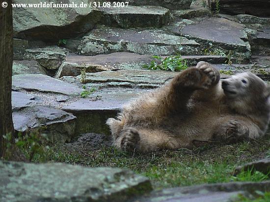 Es war kühl, dicke Wolken am Himmel, es hatte vorher geregnet und es war schon ziemlich dunkel. Und bei diesen Lichtverhältnissen streiken die digitalen Kameras irgendwann. Video Camcorder funktionieren da besser. Und so ist die heutige Fotoausbeute nicht berauschend, sorry. Ein Blitzlicht nutze ich absichtlich nicht bei den Tieren, somit auch nicht bei Knut.