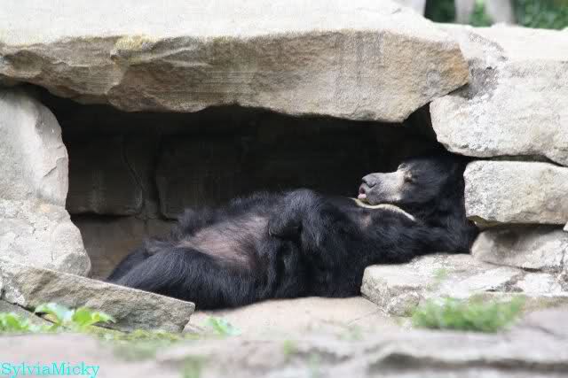 Der Bär hat die Ruhe weg, während Sutra den ganzen Tag von einem Höhleneingang zum anderen läuft