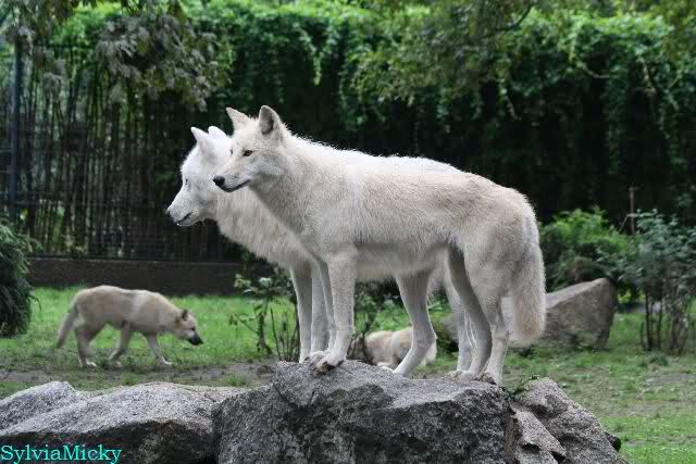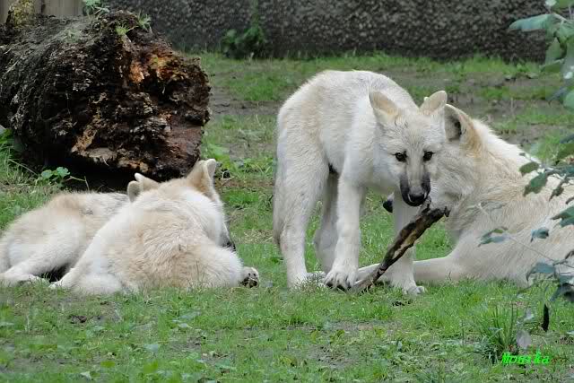 Bei den Wölfen war heute Action angesagt. Sie hatten zwei große Knochen und jagten sie sich gegenseitig ab.Ich habe noch ein Video davon, werde es morgen oder übermorgen einstellen.
