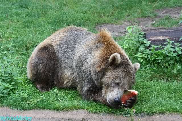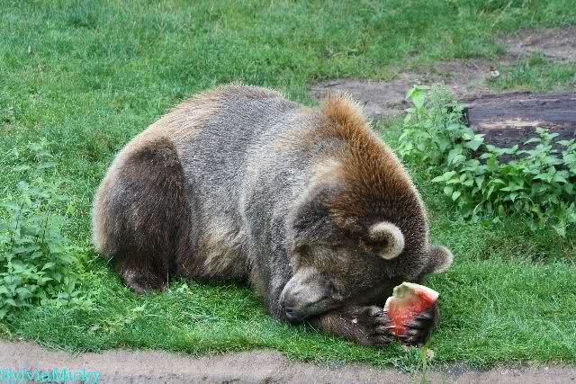 Die Braunbären bekamen Melonen. Siddy freute so sehr darüber, daß sie sich auf der Melone rollte