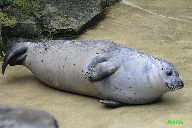 Die Kleine (Mandy oder Hilde)war die einzigste die noch munter war, und unterhielt uns mit etwas "Seehund-Yoga" .