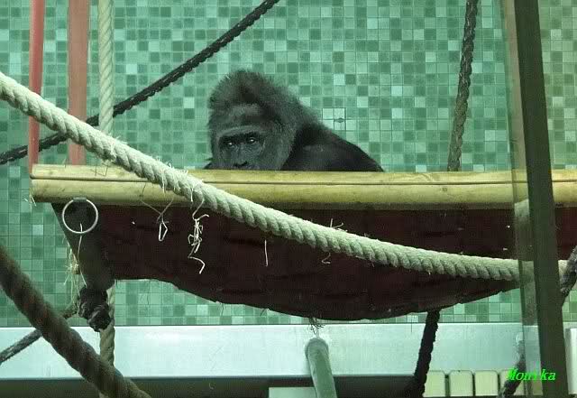 Das Affenhaus war gestern auch lange auf und die meisten Affen schliefen schon oder machten gerade ihre "Betten" aus Stroh oder einem Jutesack. Die Mandrills schliefen alle im sitzen.