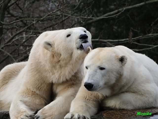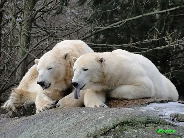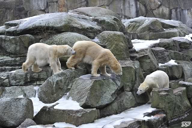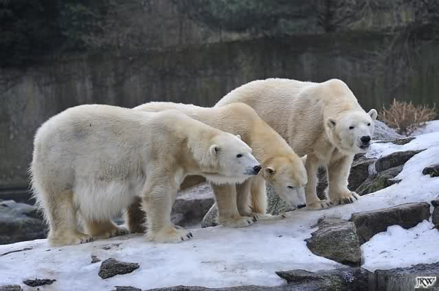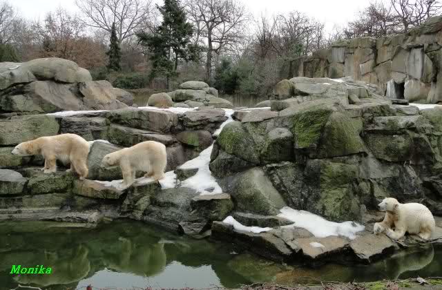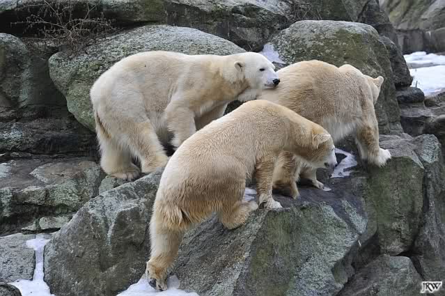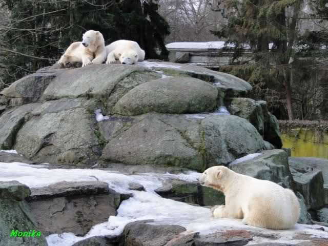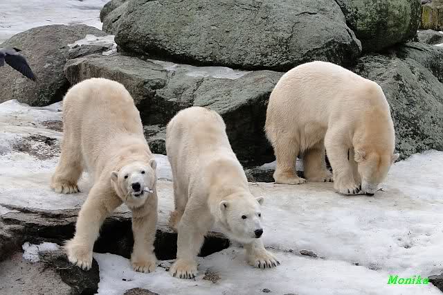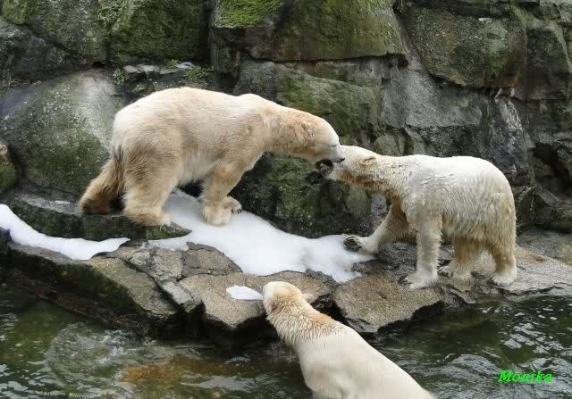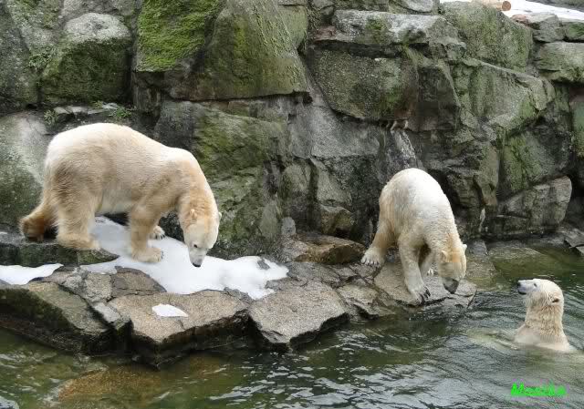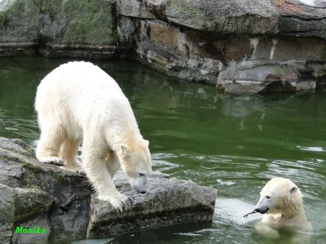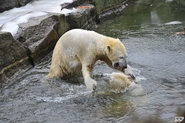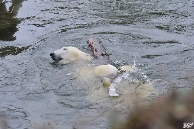 schöne Motive, Tosca mit Baumstamm und Knut versenkt die Mama ... Ok, Knut geht's gut und den Mädels auch