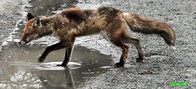 Der Fuchs sah ziemlich mager aus. Hat er noch Winterfell, oder ist die Fellmusterung normal? Habe bisher immer nur Füchse mit hellbraunem Fell gesehen.