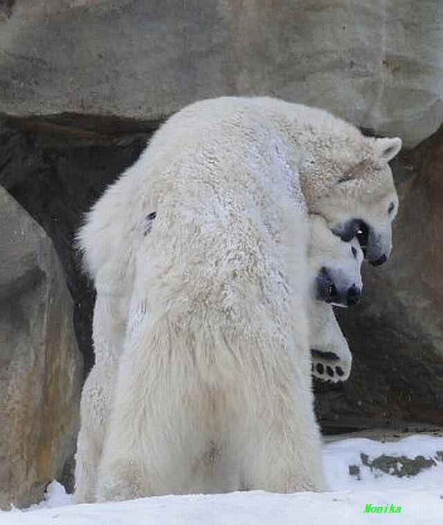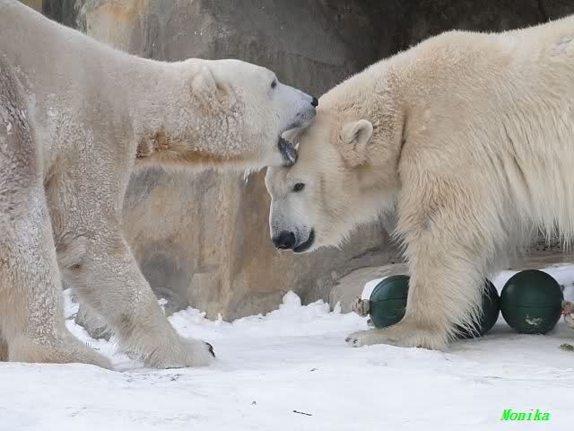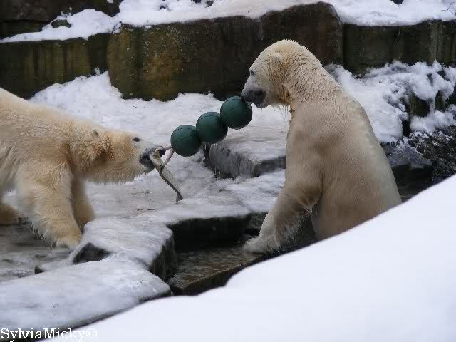 steht in jedem Artikel. Ganz so ist es ja nicht, aber der Eisbär ist natürlich ganz klar im Vorteil. Es sieht wunderschön aus, wenn sie durch den Schnee kullern und über die Anlage rennen.