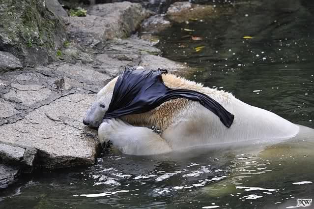 Man hätte diejenigen, die diese Aussage bei "Panda&Co." gemacht haben, mal fragen sollen, wie sie es sich denn erklären, daß im Kopenhagener Zoo die Eisbären stundenlang spielen - mit täglich wechselnden Materialien.- Sind die etwa "unnormal"?