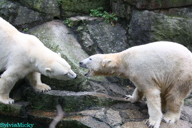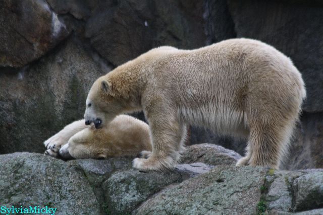 Dann wieder auf die Insel zu Knut, der brummte wieder. Es sah so aus, als wenn sie Knut zum spielen animieren wollte.