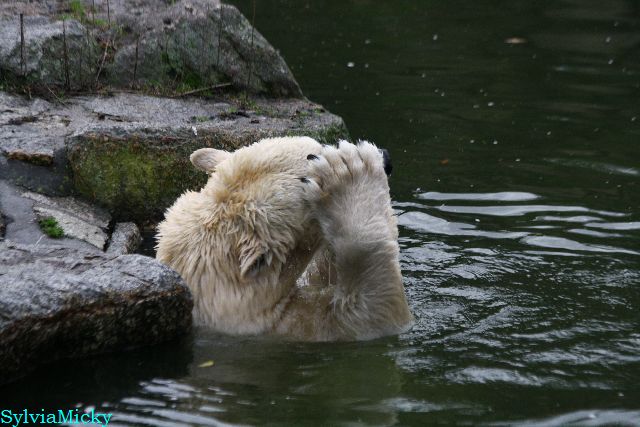 thank you very much for all your new photos and reports from the Zoo of the latest days: I am glad to see and know that fresh water in the enclosure made Knut and the Ladies a little bit happy.
