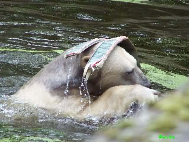 Erst heute habe ich hier im Forum geblättert, aber mein Partner hat mich stets mündlich auf dem Laufenden gehalten und hierbei vernommen, dass Gianna immer noch nicht mit Knut zusammengebracht wurde. Gianna ist doch so eine quicklebendige Wasserratte und sie spielt soooo gerne mit ihrem Eimer! Wahrscheinlich wird sie im hinteren Bereich nichts zu spielen bekommen, oder doch? Vielleicht kann mal jemand nachfragen? Nicht verwunderlich, dass die *kleine Maus* sich an die ganzen Umstände erst gewöhnen muss. Ich bin schon sehr gespannt, wie es sein wird, ob sie auch in die *Schminkecke* geht, wenn es denn so weit ist, dass sie ins Gehege kann.