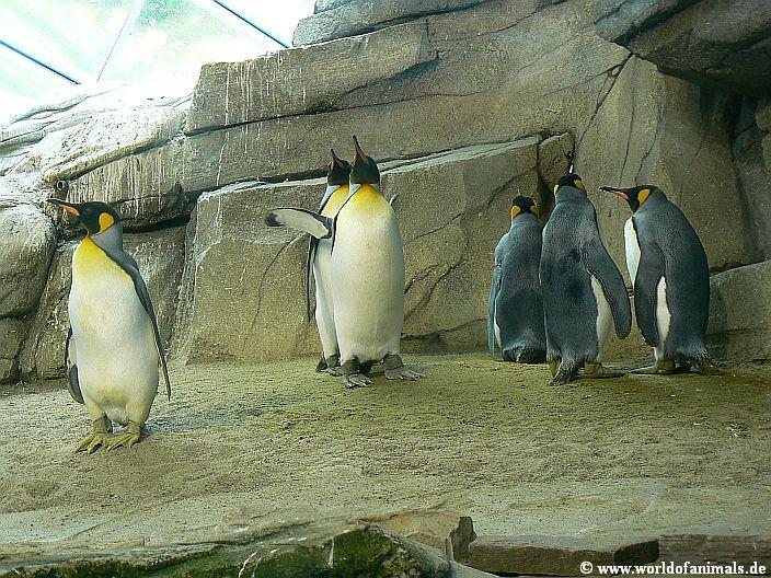 Die Königspinguine in ihrer schmucken Anlage in der es ab und zu schneit und entsprechend kalt ist.