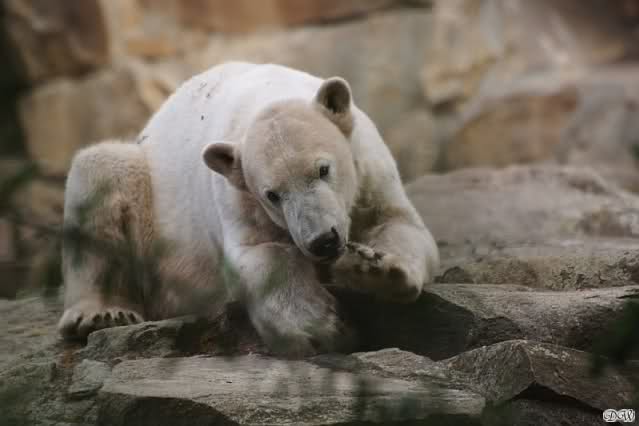 heute war mal wieder ein wunderschöner Zootag. Allerdings wurde es gegen Mittag rappelvoll. Knut war bestens gelaunt nachdem er bis ca. 10.00 Uhr geschlafen hatte. Er vergnügte sich mit so vielen Dingen, dass wir überrascht waren zu sehen, dass es bereits 13.00 war. Von nachsehen was die Damen im Kiosk machten, zu Entenschauen, Zuschauer genau beäugen, Blätter zupfen, kurz mit einem Ball spielen und natürlich durfte das geliebte Nackthuhn nicht fehlen. Damit spielte er über eine Stunde, bearbeitete es, klatschte es sich um die Ohren, warf es ins Wasser und sprang sofort hinterher und das Spiel begann von Neuem.