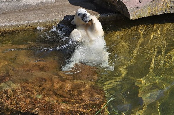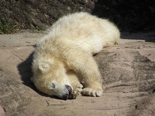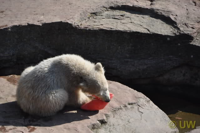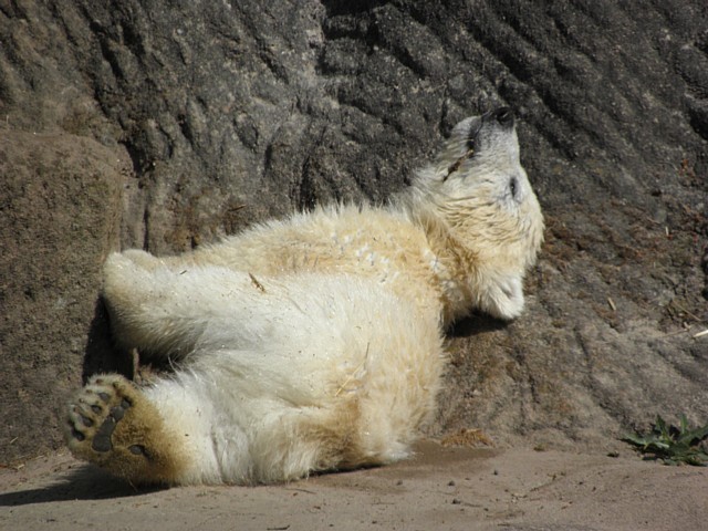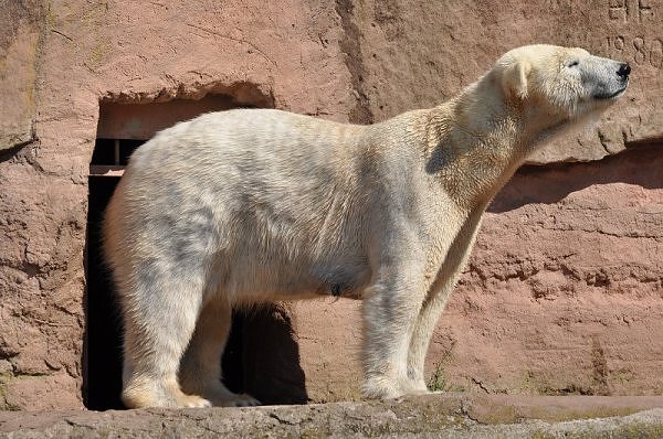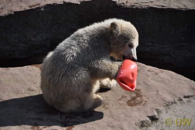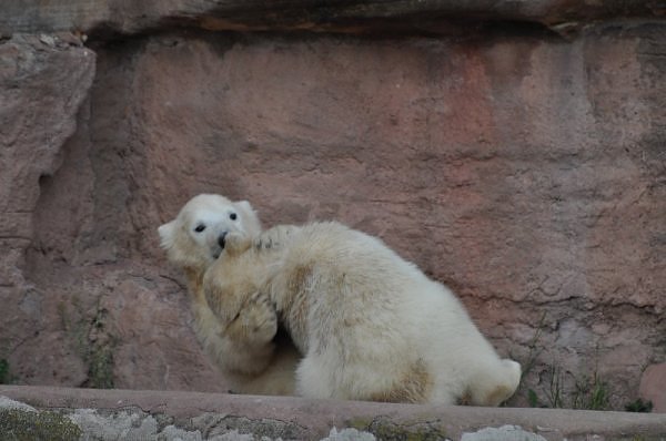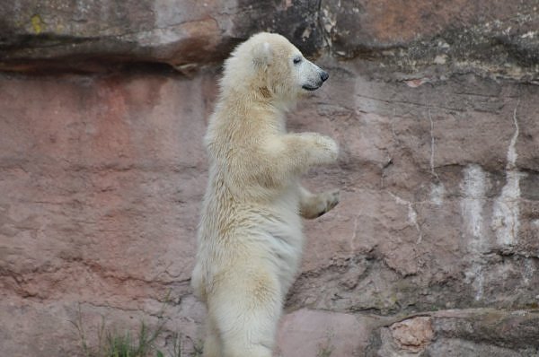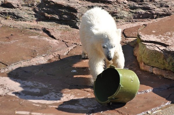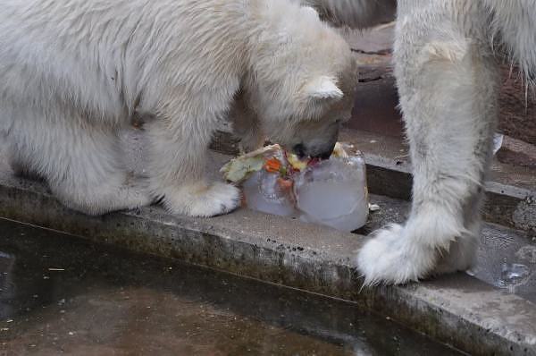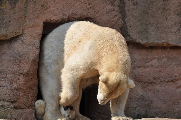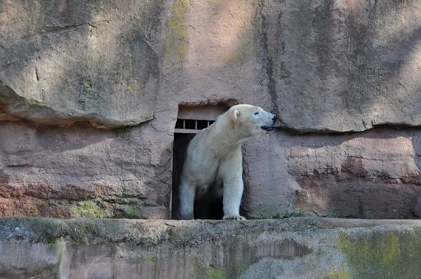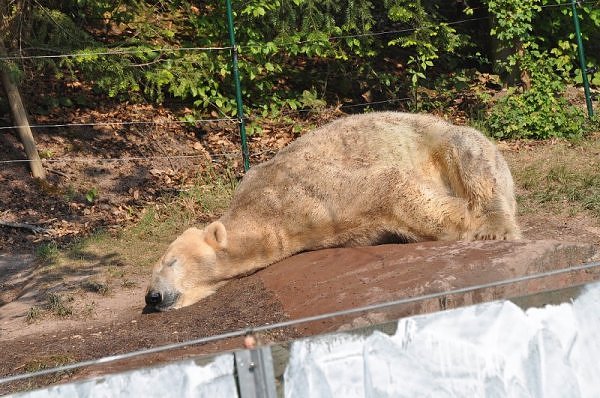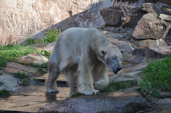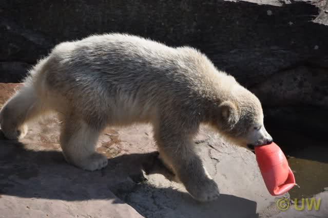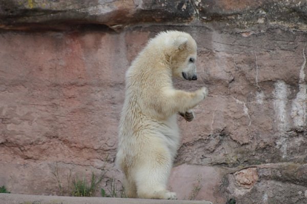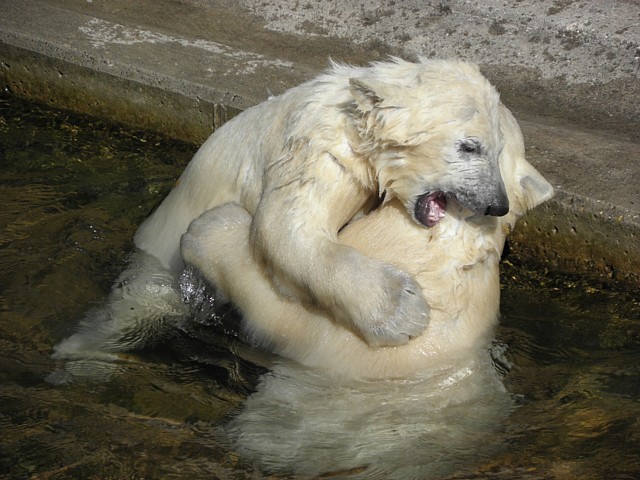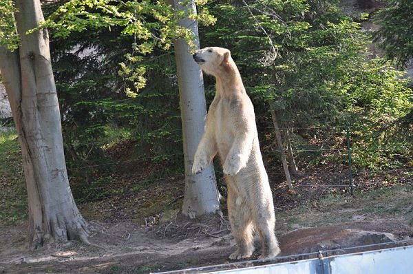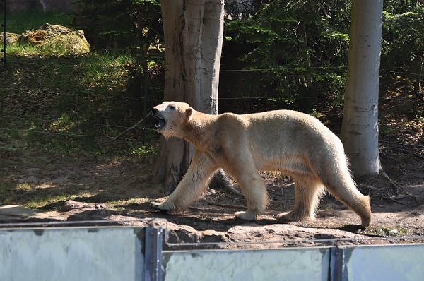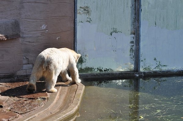 Am 25.4. sind wir im Tierpark Nürnberg sehr zeitig angekommen. Wir waren am Eisbärengehege schon um 8:30. Zwei Tierpflegerinnen machten das Gehege von Vera, Gregor und Aleut sauber. Vera klopfte ununterbrochen von innen. Felix lief nervös hin und her. Er hechelte, schnüffelte mit der Nase und sabberte. Er sieht sehr dünn aus.