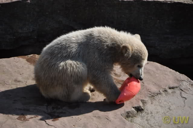 Um Felix mache ich mir auch große Sorgen. Er sieht erbarmungswürdig aus. Gut ist es natürlich, dass man versucht ihm die Sicht zu versperren. Es ist schon erstaunlich, wie sehr der einst so stattliche Felix unter dem "Liebesentzug" zu leiden scheint. Ich hoffe, das das wirklich nur der einzige Grund ist. Anton in Stuttgart ist auch immer zur Scheibe geschwommen und hat Wilbär und Mutter beobachtet. Auch er war nicht zum Spielen aufgelegt. Allerdings war er rund und mollig und hat sich nicht so echauffiert.