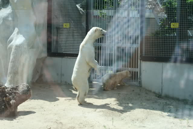 Als wir in Rhenen waren sind Victor und Freedom nur kurze Zeit hin- und hergelaufen, das habe ich auch geschrieben. Es war kurz vor der Fütterung, nachdem sie ihre Eistorten bekommen hatten, waren sie damit lange Zeit beschäftigt. Viktor hat anschließend geschlafen. Ich finde die beiden alten Eisbärenanlagen in Rhenen auch zu klein, weiß aber, dass die Eisbären abwechselnd auf die große Anlage dürfen.