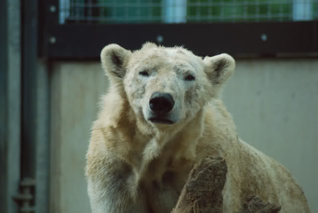 Der Eisbär Nord in seinem Käfig, also dann lieber vorübergehend Brno