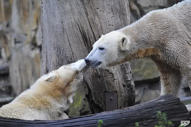 Danke für die Fotos der Eisbärenkiddies. Ihr habt da wieder richtige Schnappschüsse mitgebracht. Sind die zwei schön anzusehen. Scheinbar haben sie jetzt einen guten Draht zueinander gefunden. Hat Knuti nun die Scheu ganz verloren, oder geht er noch manchesmal zurück? Sieht jedenfalls so aus, als hätte er manchesmal noch Respekt vor ihr, aber nicht so in dem Ausmass, wie ich es noch kennengelernt hat.