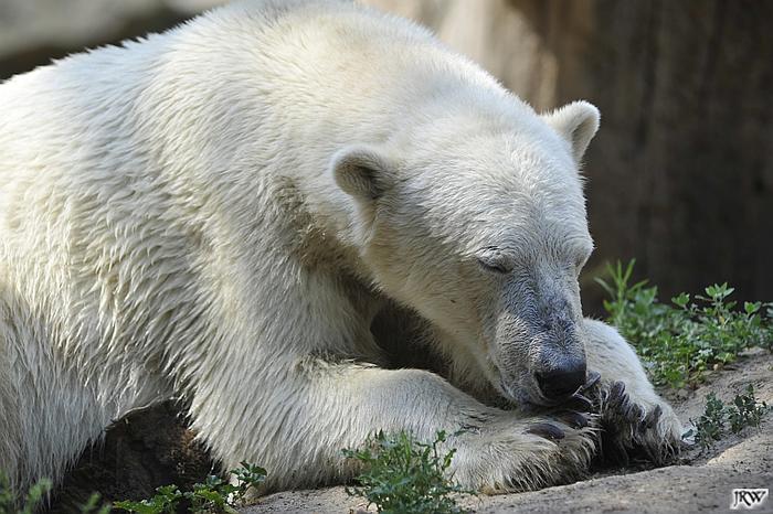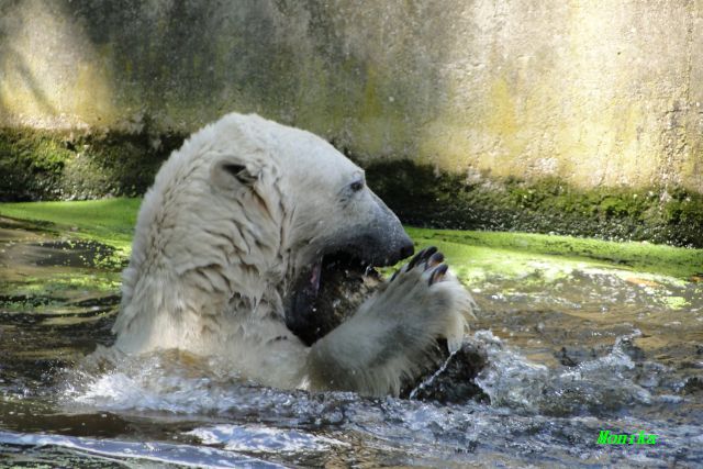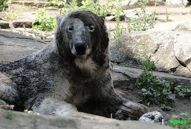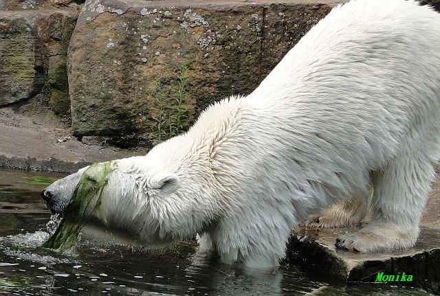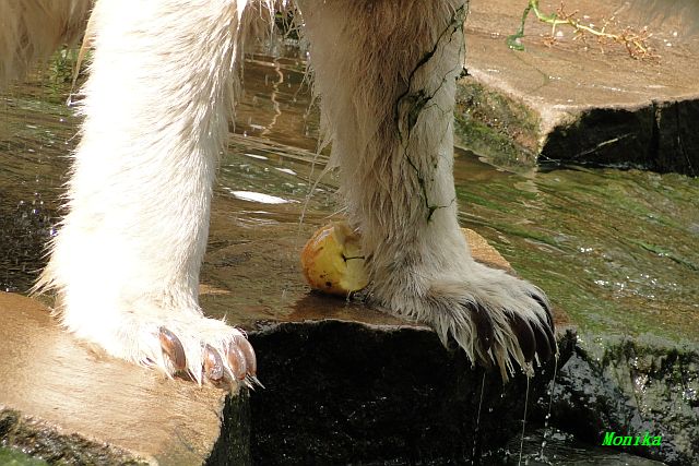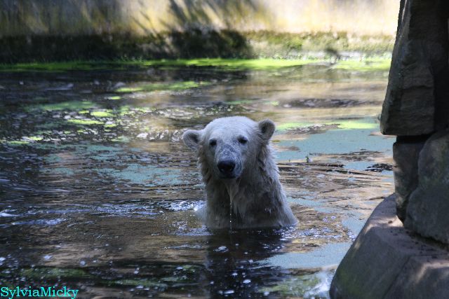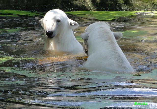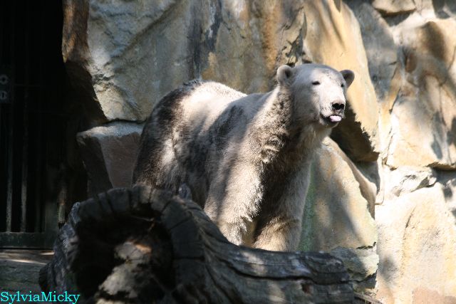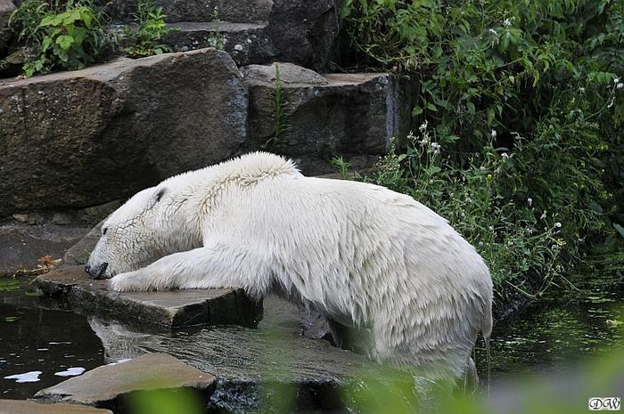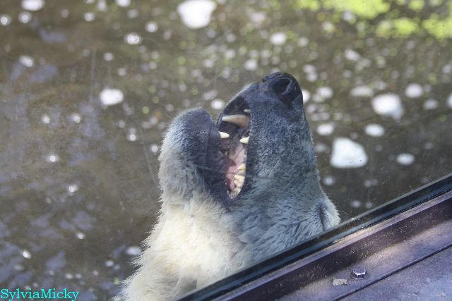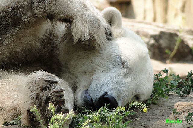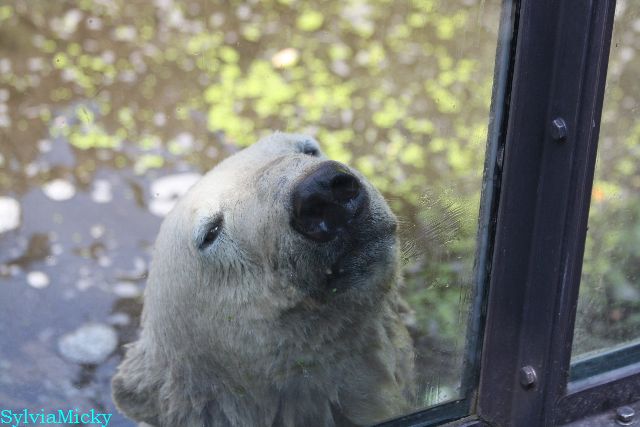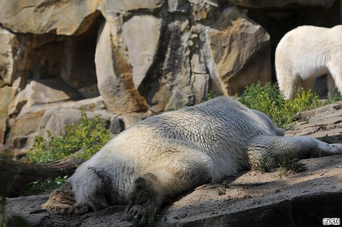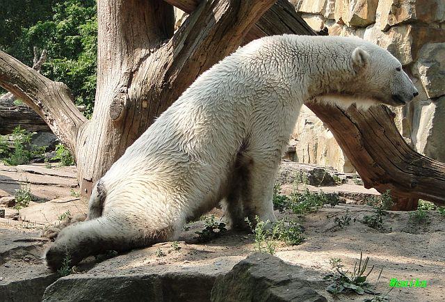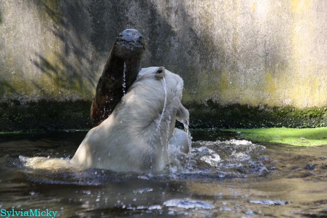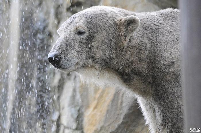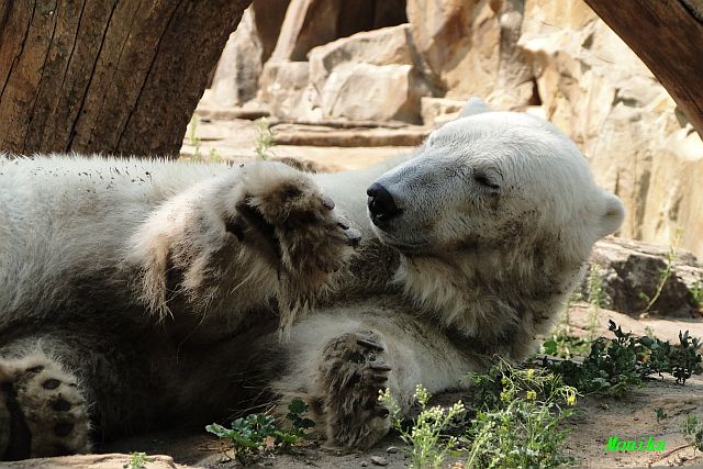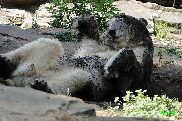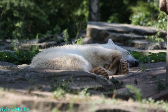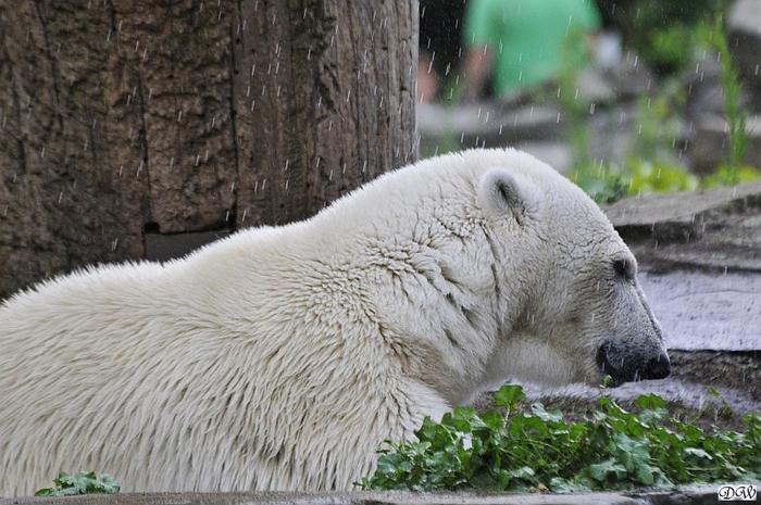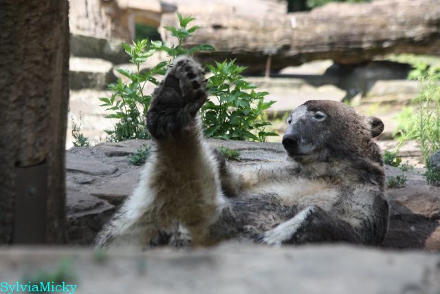 Hallo Doris, weißt Du ob die großen Eisbären gestern auch eine Dusche bekommen haben? Nancy und Tosca lagen heute Mittag bei der Hitze ganz an der Mauer, weil da noch ein bißchen Schatten ist.