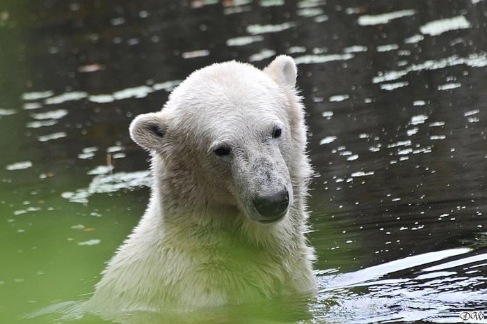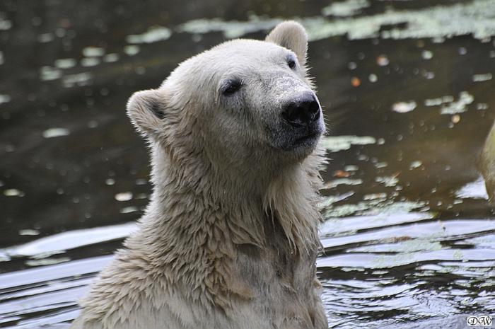 Good evening, good night to you all polar bear friends. It was another hot day in Knut City and the two polar bear kids got some good showers.