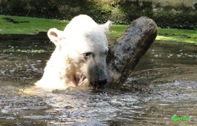 Ich habe hier noch ein kleines Video von gestern, als Knut mit dem großen Baumstamm im Wasser spielte.