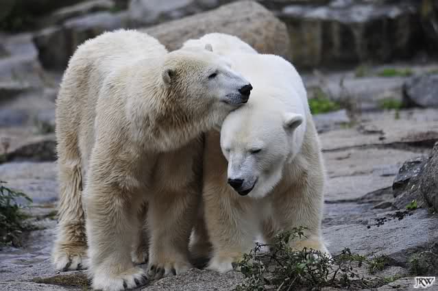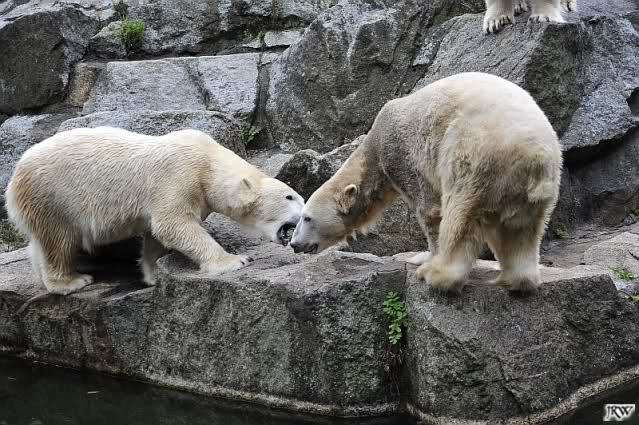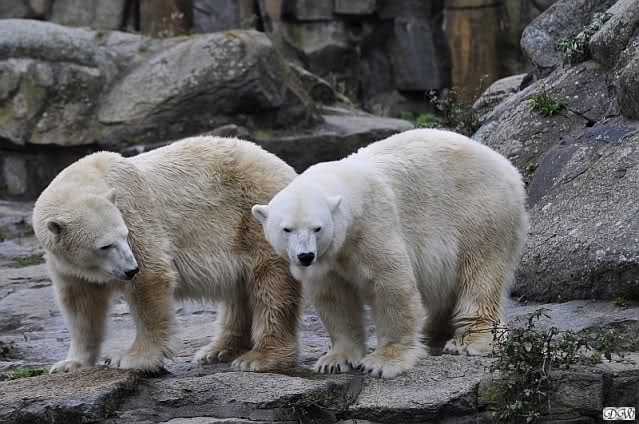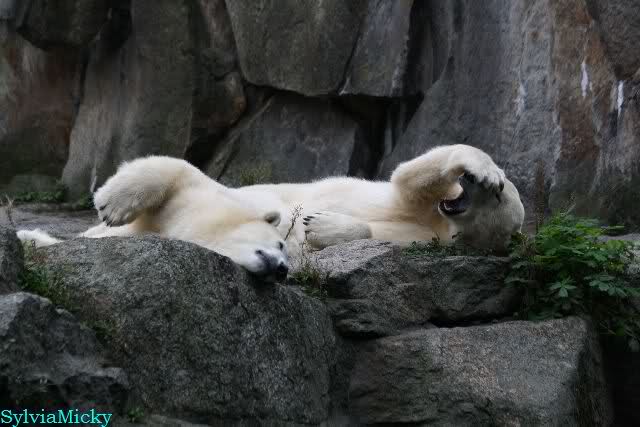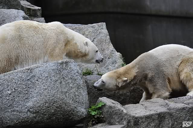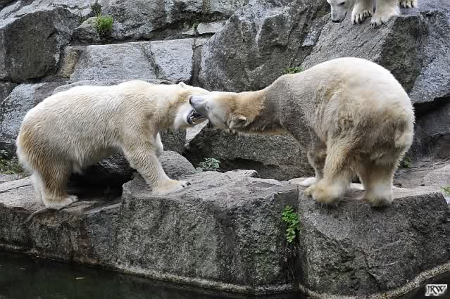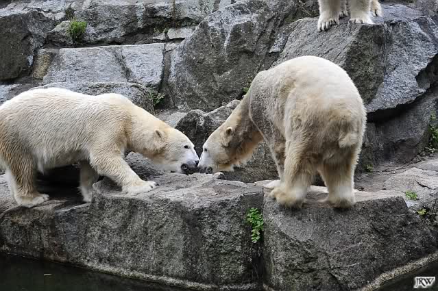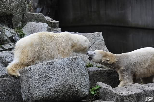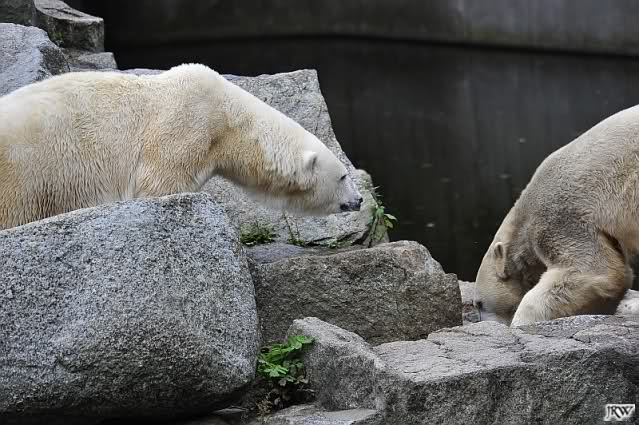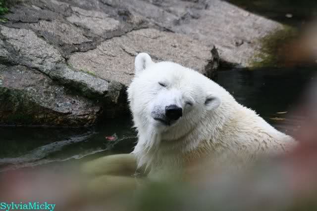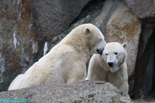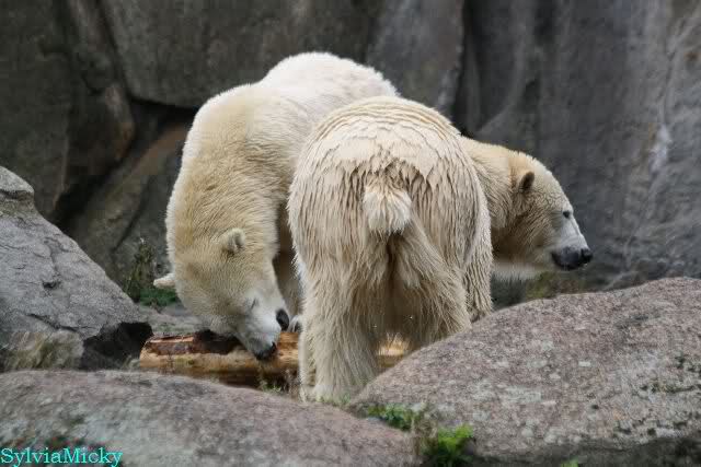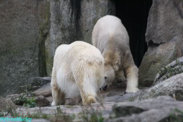 Good evening to you all Knut & Co friends around the world. It seems the polar bears were in a good mood today. Knut had not so much stress today. Enjoy the pictures.