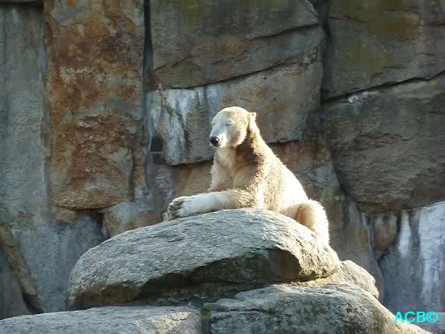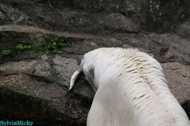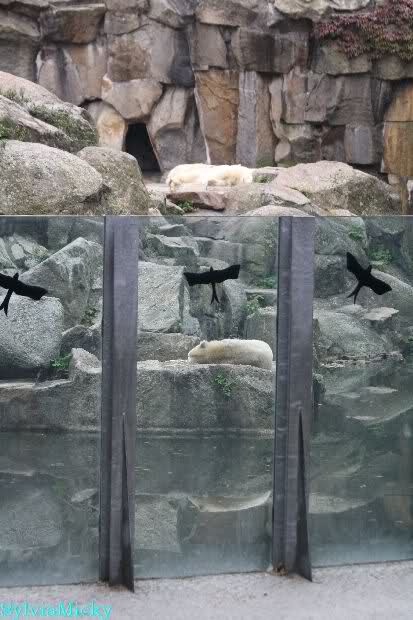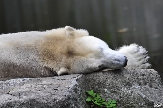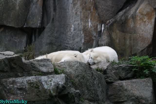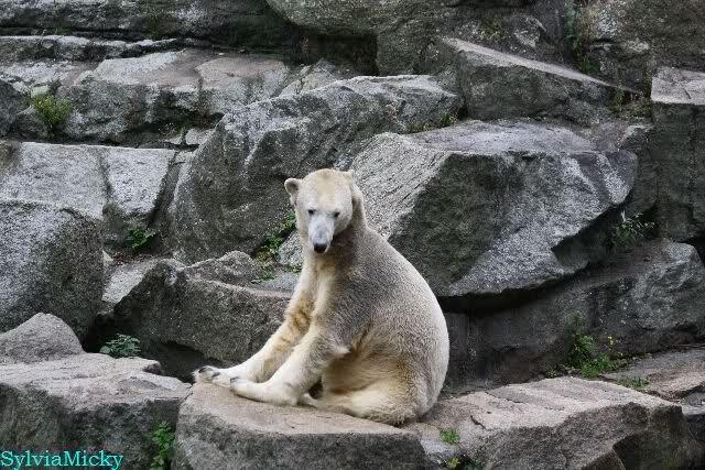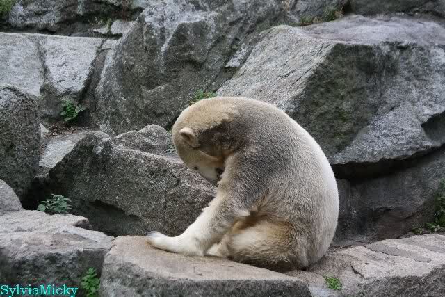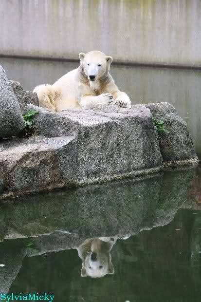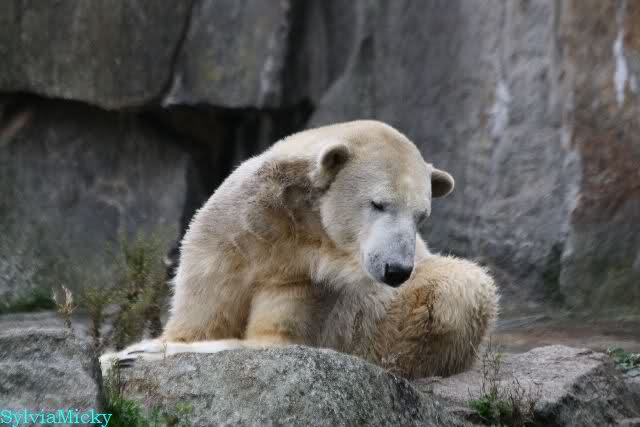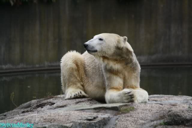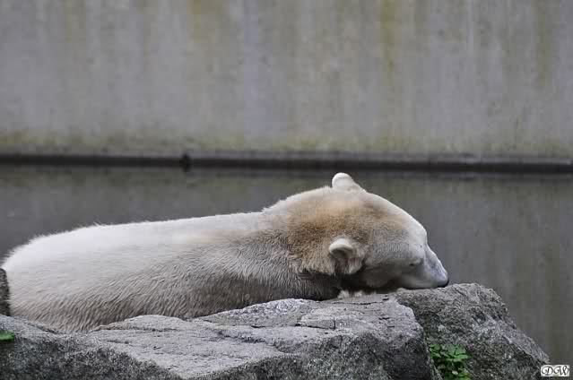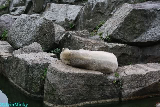 Ich war von 9.00 bis kurz vor 10.00 alleine an der Anlage von Knut. Es war sehr schön. Knut schlief und die Großen auch. Eine japanische Knutfreundin aus Tokio kam kurz in der Pause eines Seminars vorbei um Knut zu sehen. Sie fliegt morgen wieder nach Hause. Sie nannte Knut Knuto. Ich habe dies schon öfters von Japanern gehört. An der Anlage trifft sich wirklich die Welt.