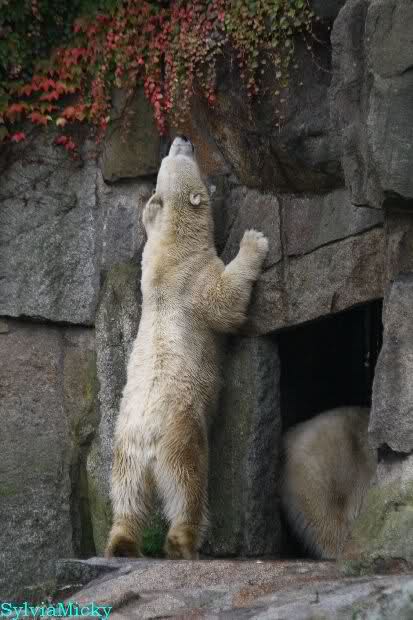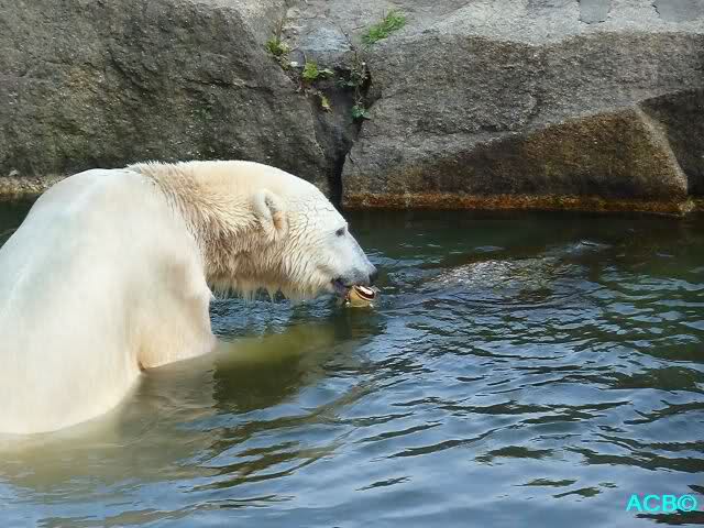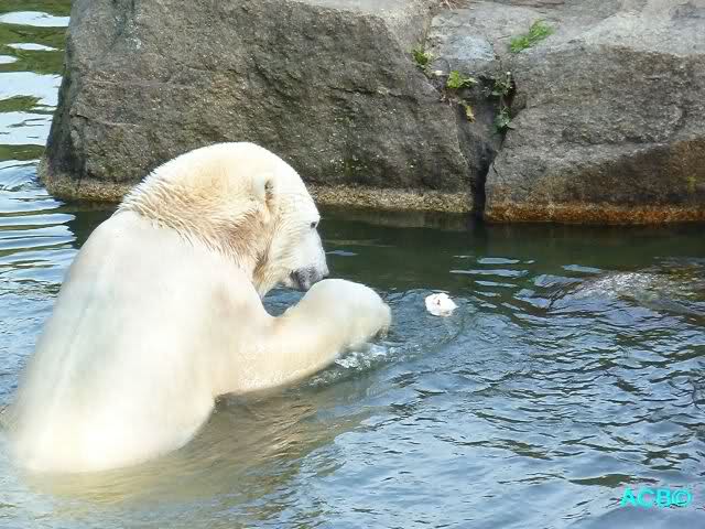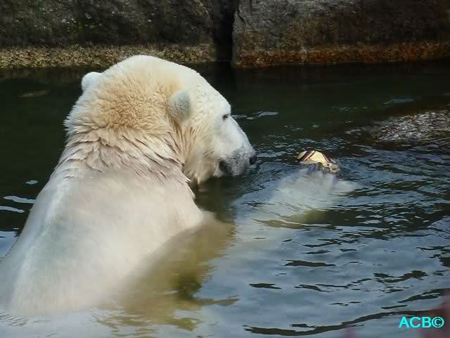 Was mir noch auffällt ist, dass Ihr Euch alle freut, dass Knut so schön mit dem Ball spielt/ gespielt hat. Auf der anderen Seite lese ich, dass Tosca heute einen Ball auseinandergenommen hat und als ich heute kam, war keine Spur mehr davon zu sehen....- Vielleicht ist das mit den Bällen korrekt, dass die ungern bis gar nicht von den Pflegern gegeben werden. Wenn ein Tier Teile von dem Gummi frißt, möcht ich mir gar nicht vorstellen, was alles passieren kann