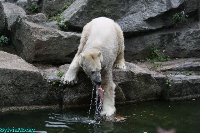 Als ich am Nachmittag bei Knut war, konnte ich einen recht fröhlichen Eisbären erleben. Das war mal positiv nach den vergangenen Tagen.