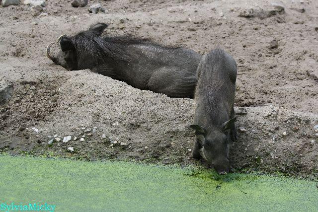 Tosca und Nancy saßen heute im Wasser und genossen die Abkühlung. Katjuscha lag im Höhleneingang.