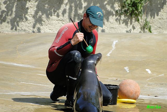 Herr Zahmel bei den ersten Trainingsversuchen mit dem kleinen Diego, der seine Sache schon sehr gut machte.