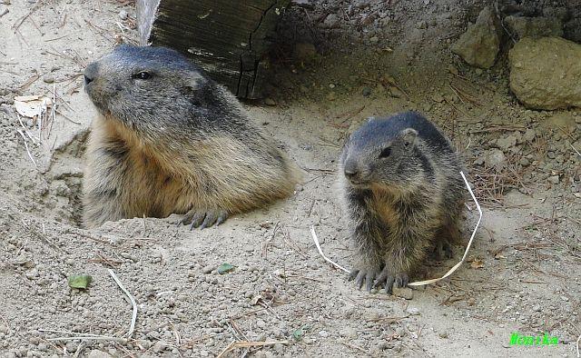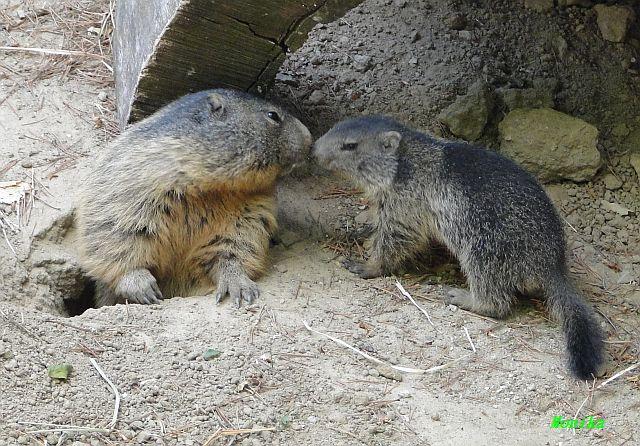 Bei den Murmeltieren wurden am 10.05.2010 Jungtiere geboren. Ich weiß nicht wieviel, aber zwei Kleine habe ich heute entdeckt.