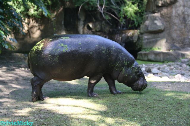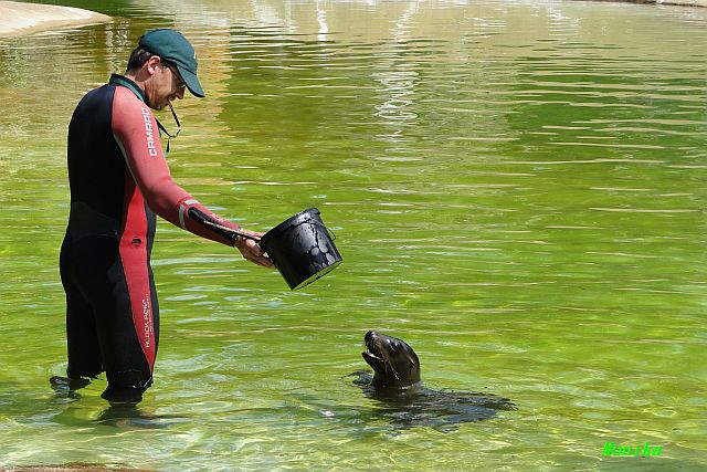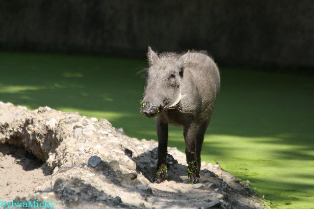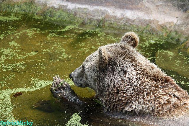 Gestern. Vor der Fütterung lief Tosca auf der Insel hin und her. Es war gestern sehr heiß.