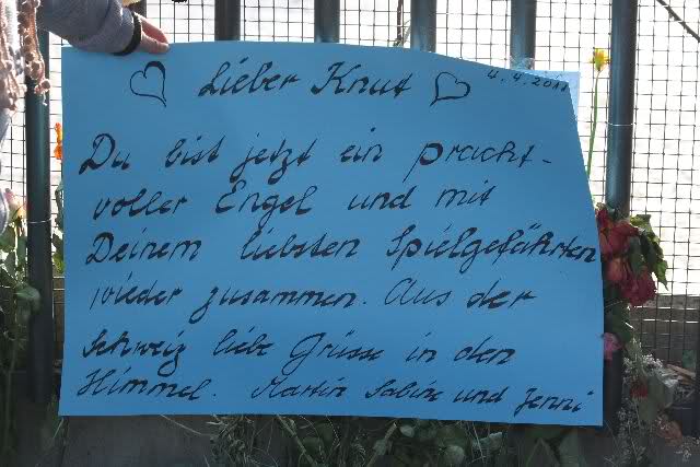 Ist es vielleicht ein Idee ein Thread zu öffnen, Hartmuth, wo man Bilder einstellen kan von Briefe, Karten, Blumen, Texten usw. der von Besucher in der Zoo gebracht sein? Meiner Meinung nach ist dass das richtige Antwort auf das herzloses Entfernen von Trauer-Ausdrücke. Und auch wenn die Aussagen der Zoo nicht gefällen, bleibt das herzlos. Der Zoo hat alle Chancen falsche Informationen zu rektifizieren; dafür ist doch keine Zensur nötig. Aber ja, das meint: Dialog, und Kommunikation - seltsame Sachen in ein sichere Berliner Verwaltung...
