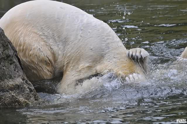 Highlife auf dem Eisbärenfelsen. Mir gefallen die Aufnahmen auch absolut. Zeigen sie doch jeden Tag ein Stückchen Weiterentwicklung von Knut. Dank an die fleißigen FotografInnen, die alles dokumentieren.