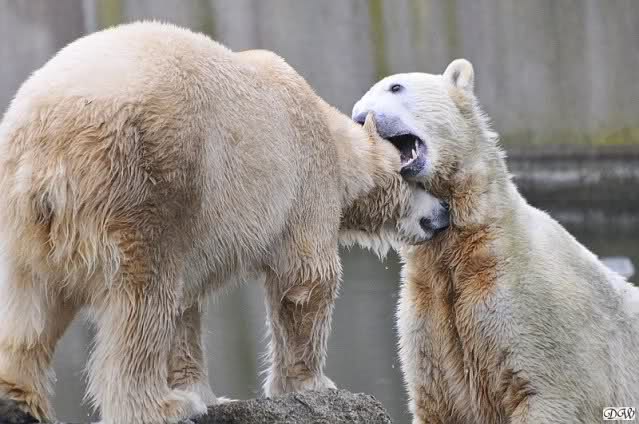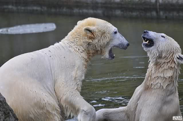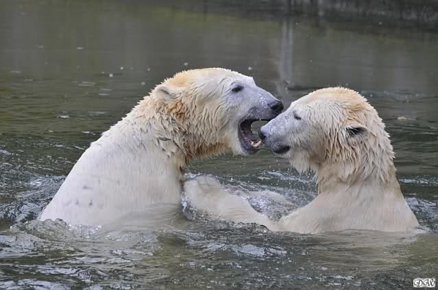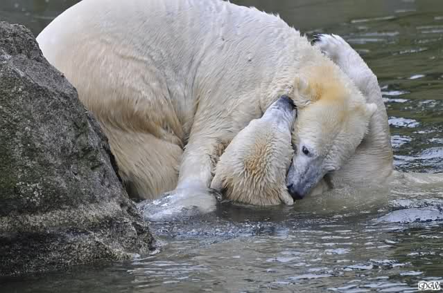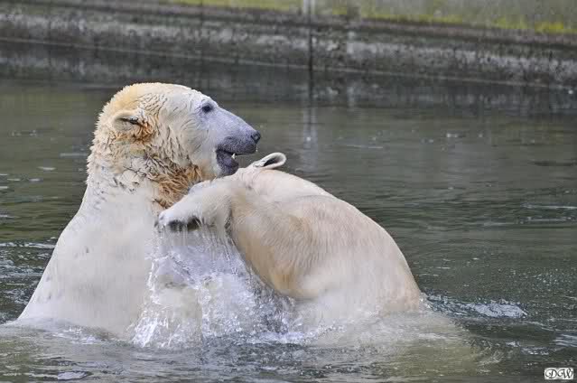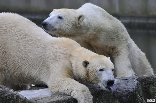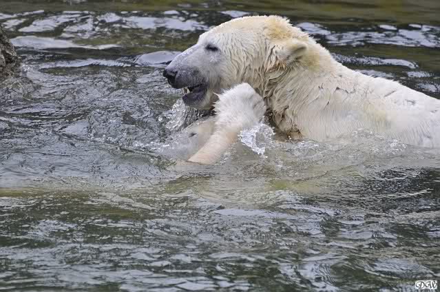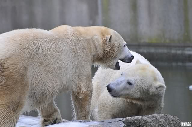 Highlife at the polar bear enclosure. Step by step, day by day more action between the bears. Knut and Tosca have so much fun. Enjoy the daily report and the great pictures.