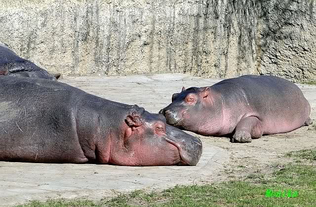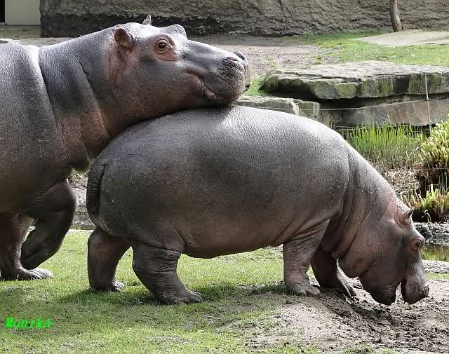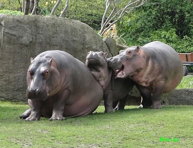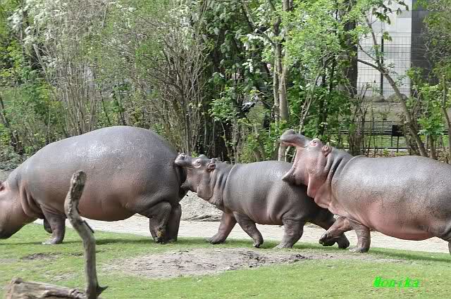 Die Flusspferde waren heute außer Rand und Band. Sie sind über die Anlage gerannt, wie ich so noch nicht gesehen habe. Die kleine "Sternchen" immer mitten drin. Mit Vorliebe biss sie ihre Artgenossen ins Hinterteil.
